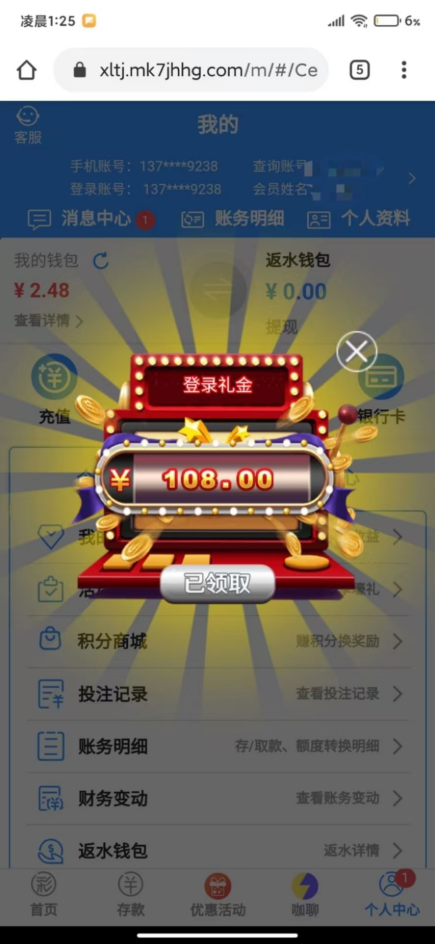 出过一次后面存了几次,然后一段时间打电话送了108打到600出款要充相同金额,存了600打到2400不给提,说同IP地址检测异常罚10倍流水,然后挂了,杂种网