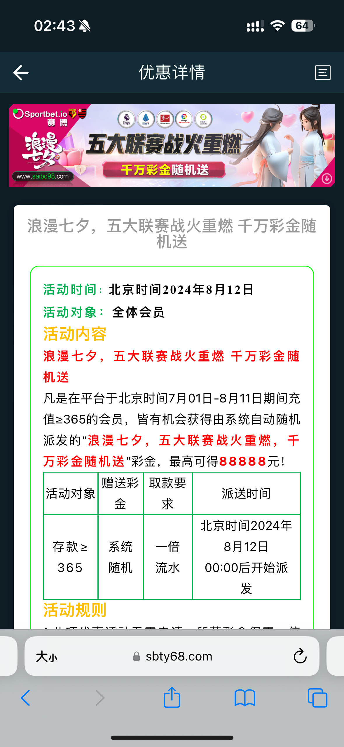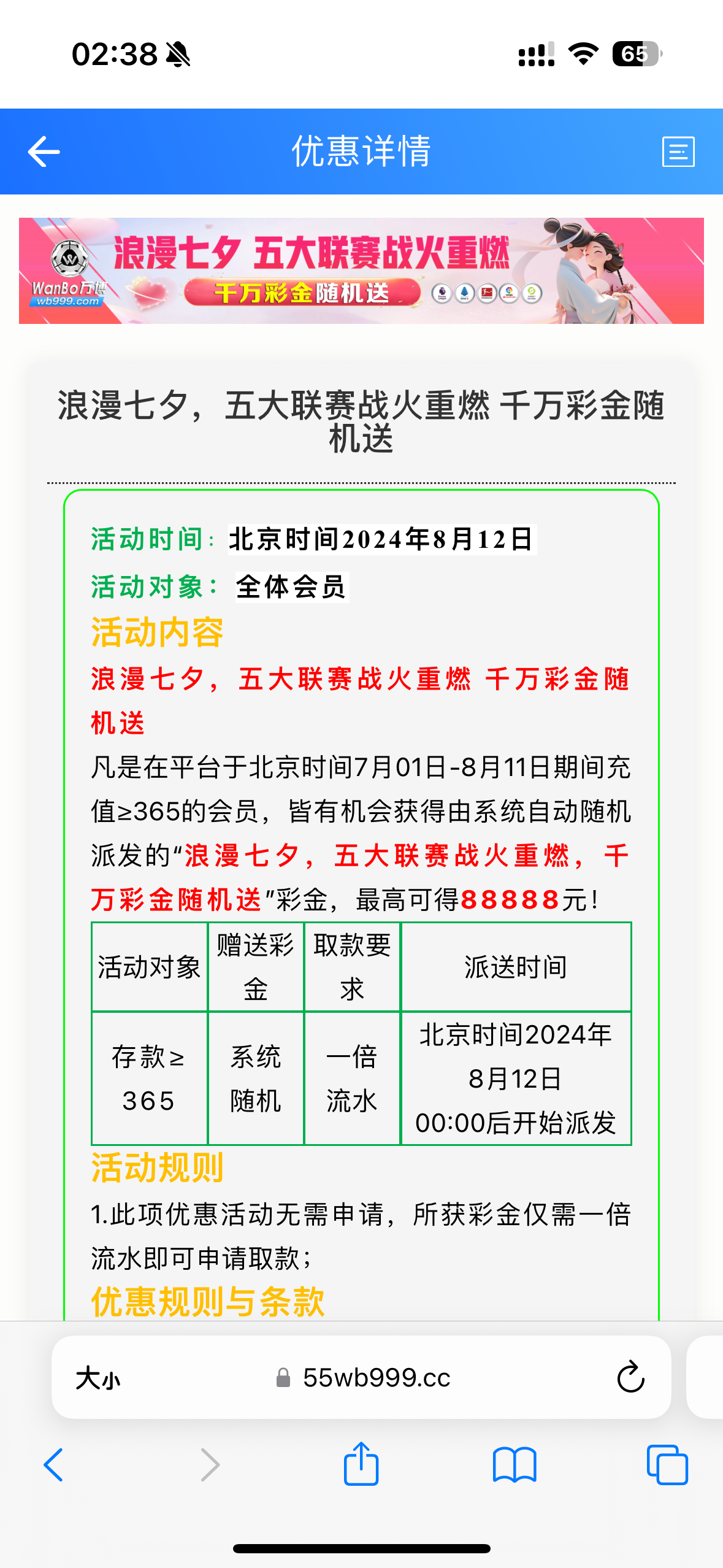 7月1日到8月11日,有充值过365以上的,有回馈彩金,没充值过的不用去了