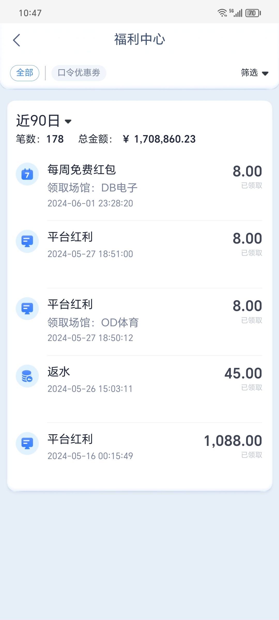 统一回复一下,是原来的天博,这个台是盈利的,赢了差不多200多个,不过全输到原来的bob了,输进去差不多400多个,以前不玩电子,都是玩百家乐和体育。170的流水不到2Y