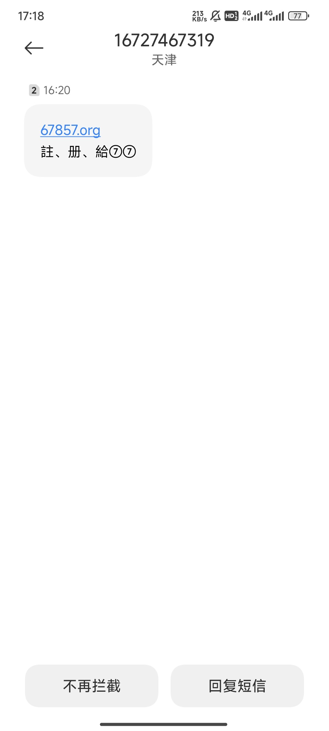 短信特邀送77可以搜一下有没有收到短信,地址 67857.org