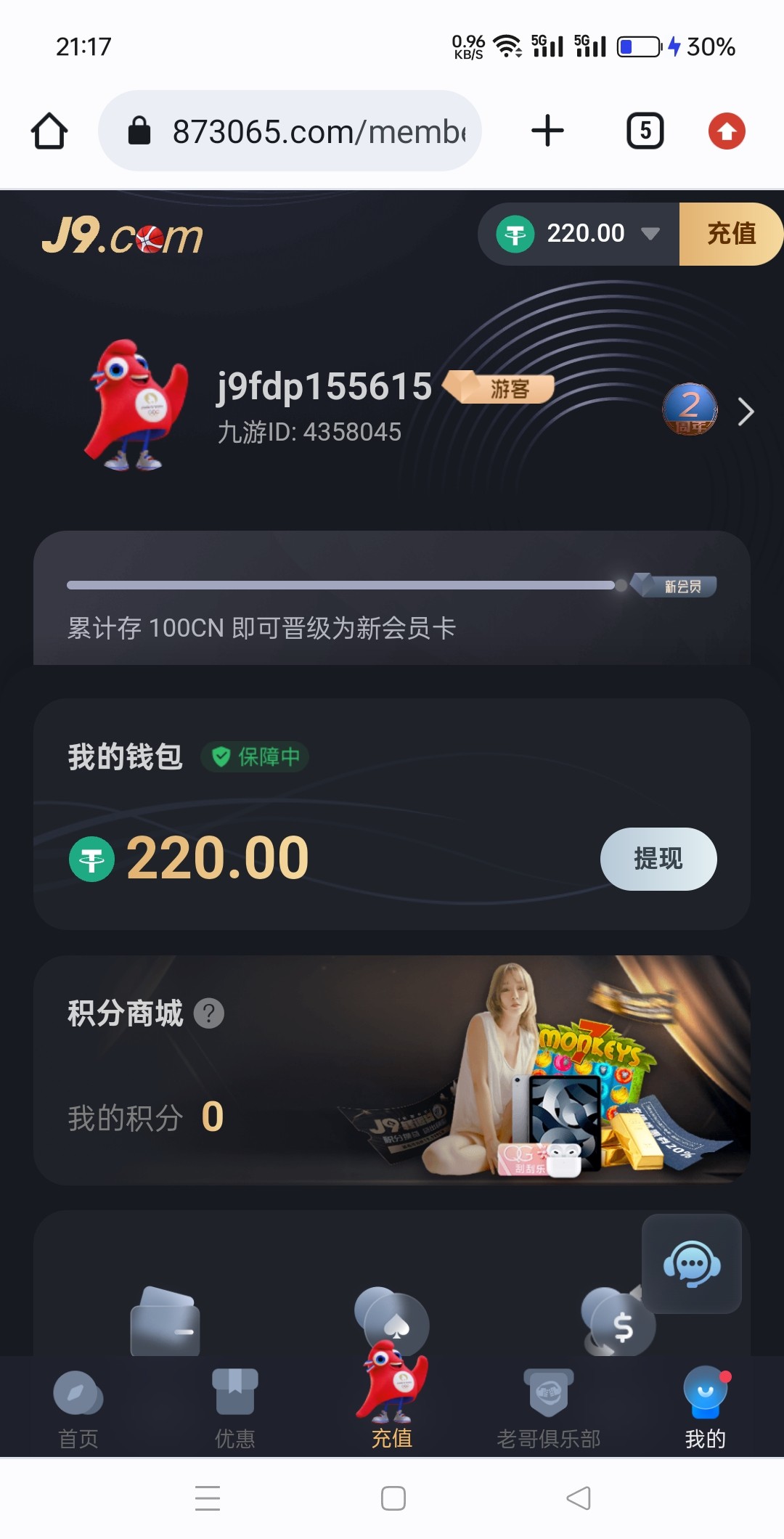 这个充100rnb进去打一倍流水就可以了 100输完了也可以直接提 反正你又不亏 提款还是稳 就是有点麻烦