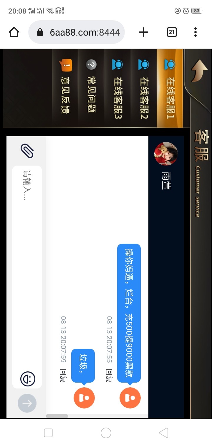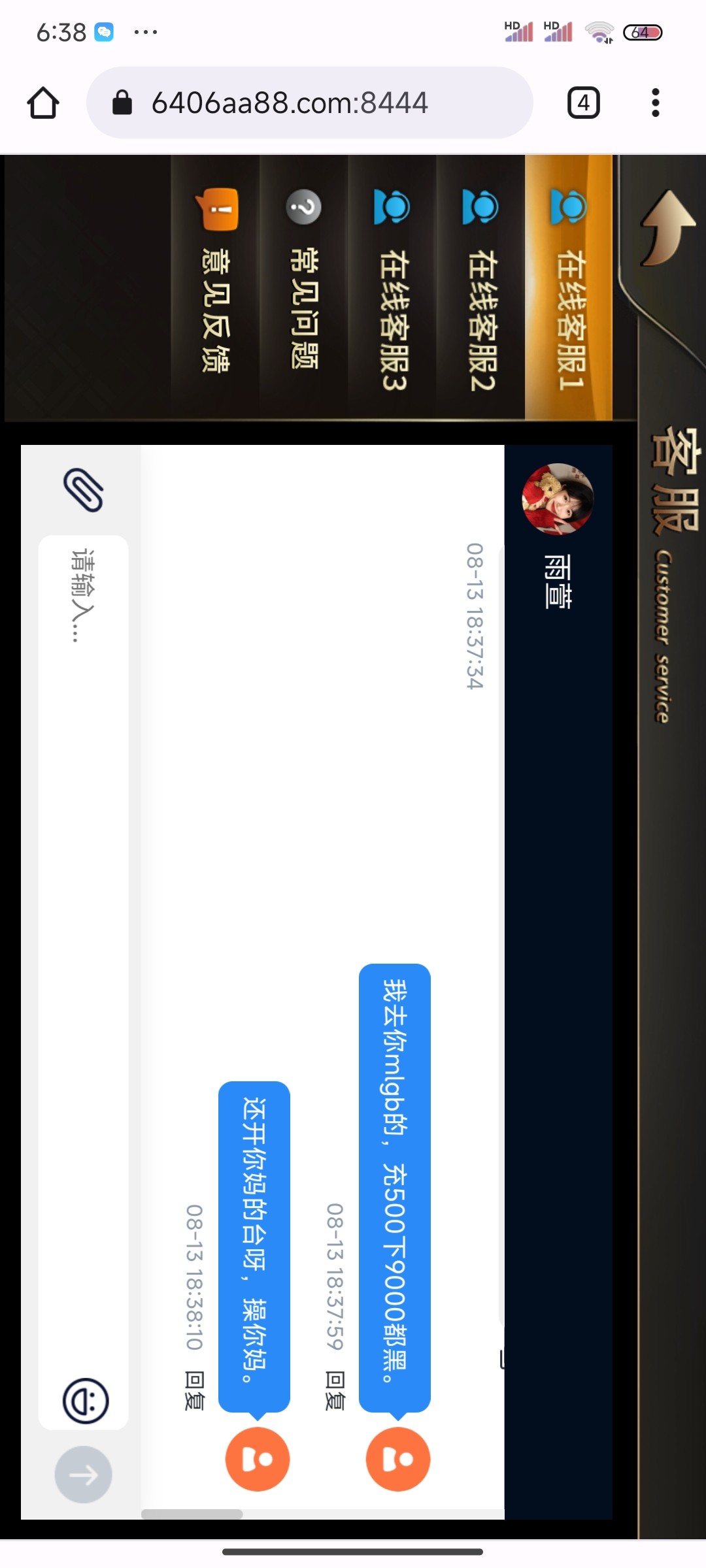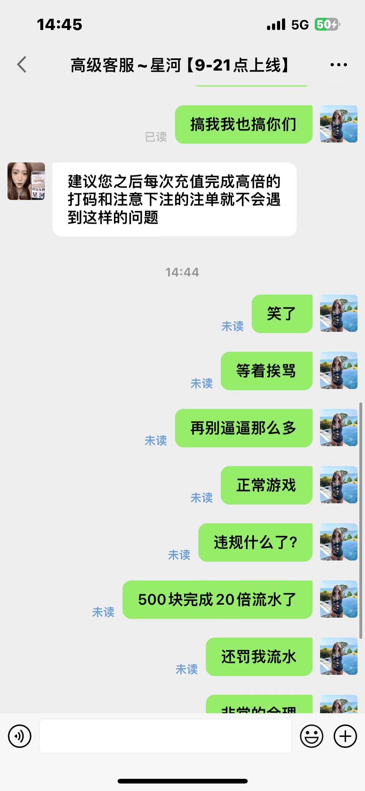 我朋友充值500赢了九千多直接罚了十倍流水,控分输完了,客服还骂人,我团过的兄弟们,还有老哥论坛兄弟一起冲一波平台客服谢谢。