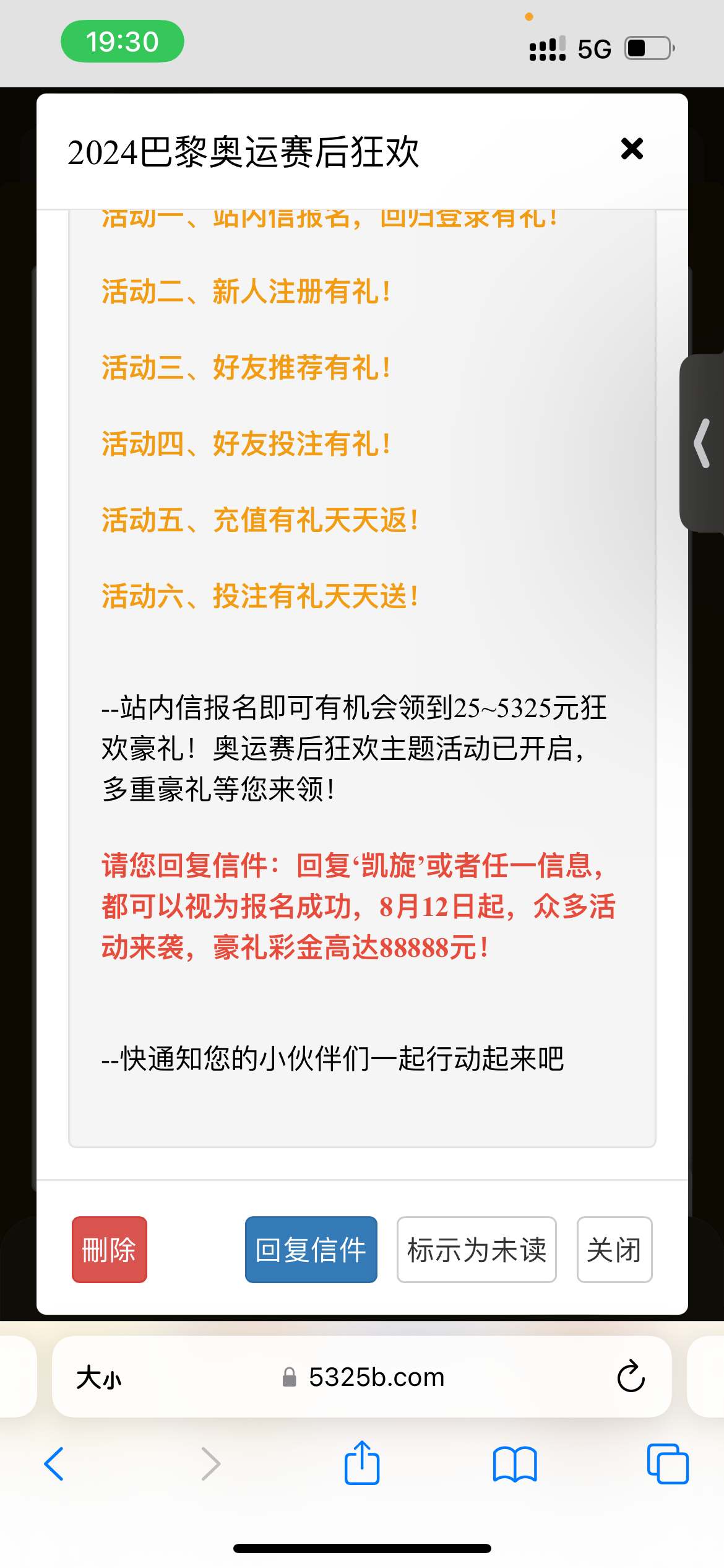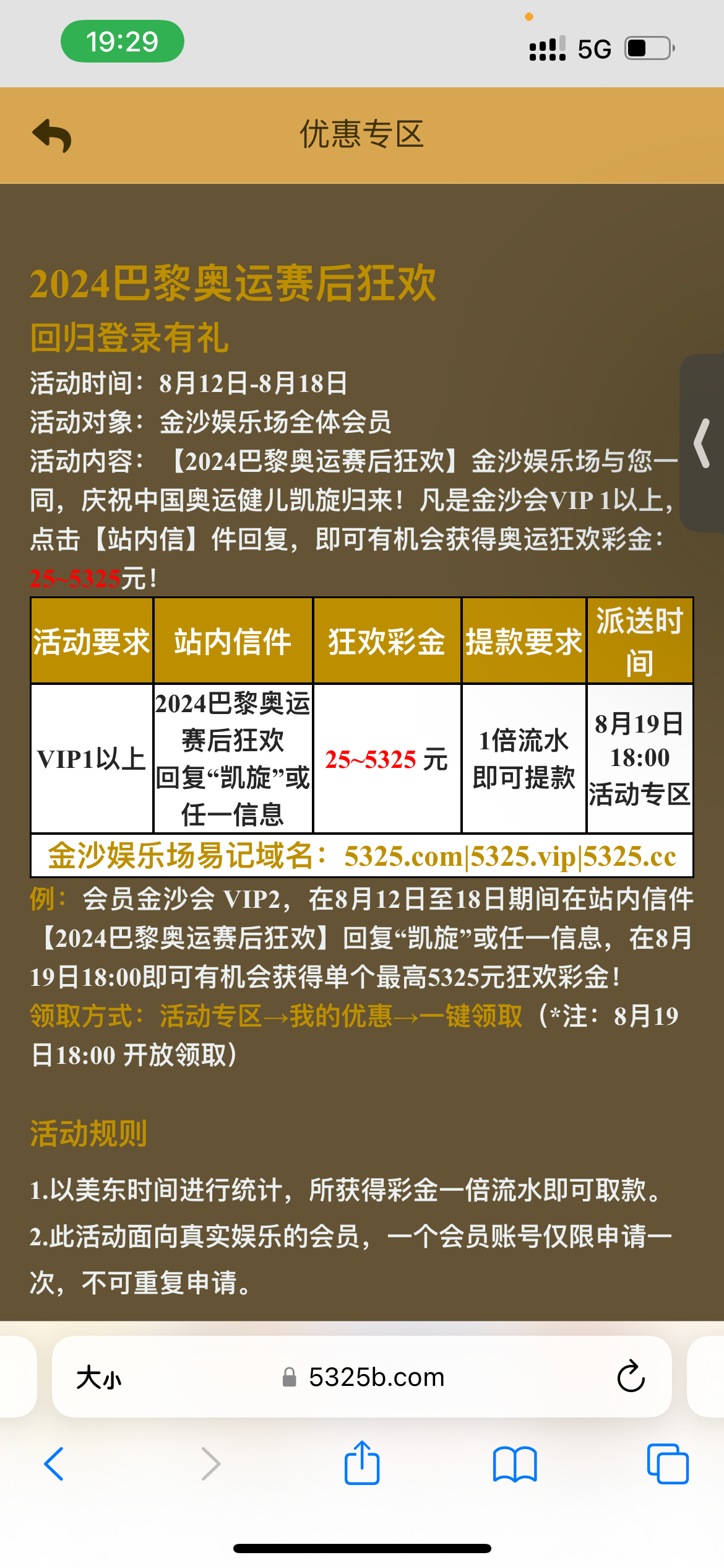 v1以上回复站内信 19号领取最低25元 具体看活动图 地址 5325b.com