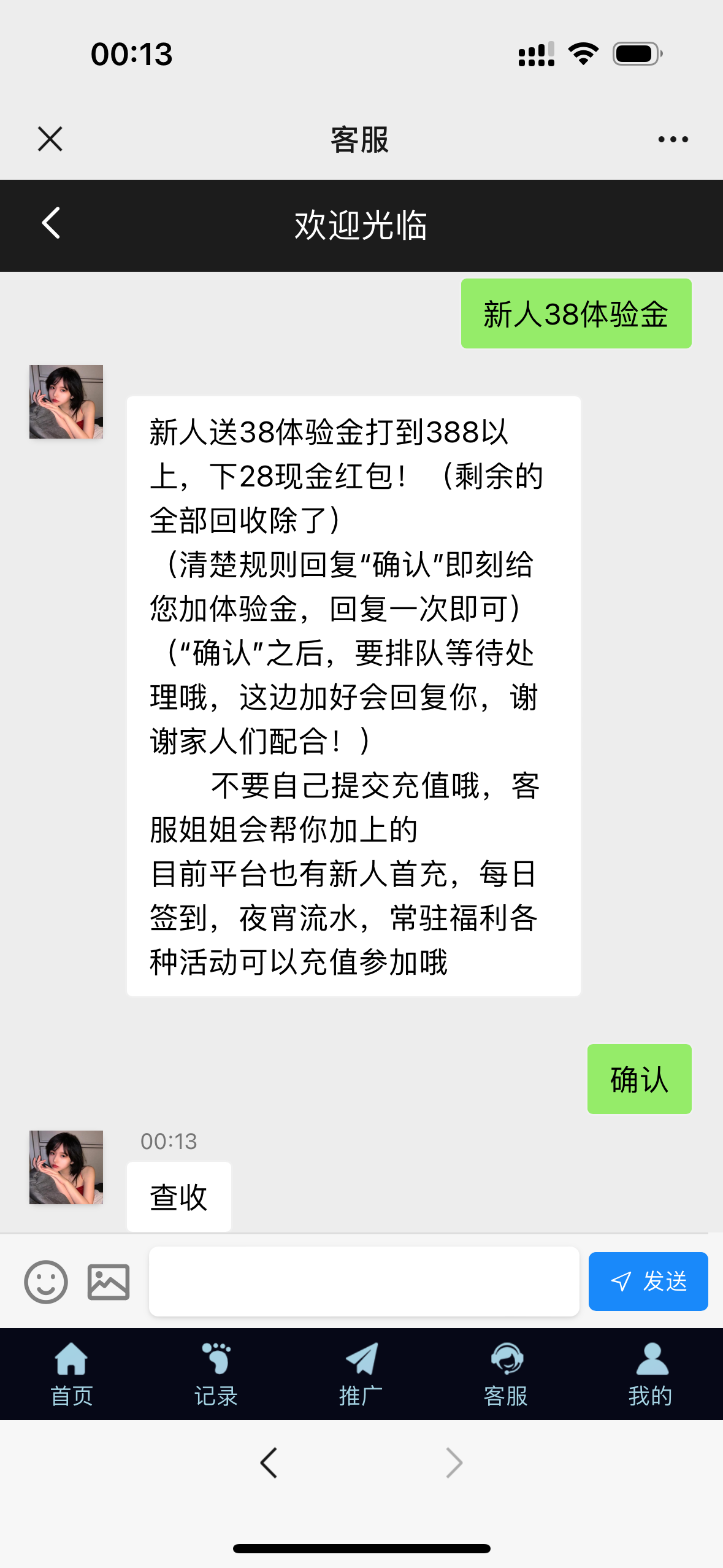 微信登陆点体验金回复确认送38