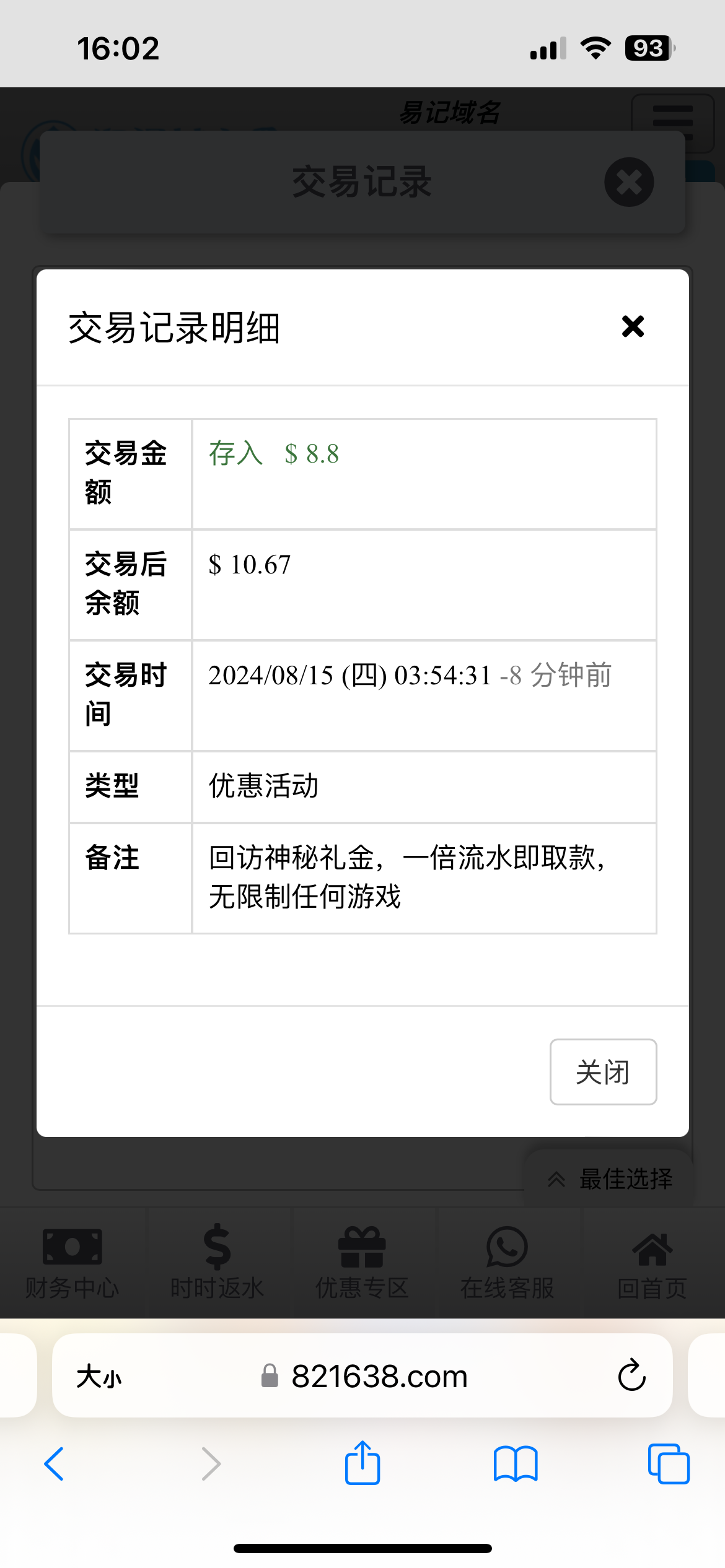 出款情况:自测(禁止充值)