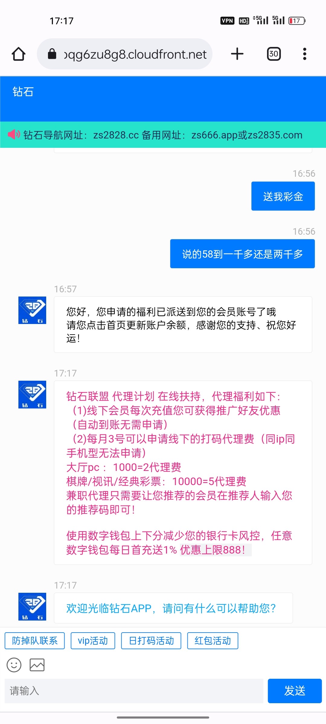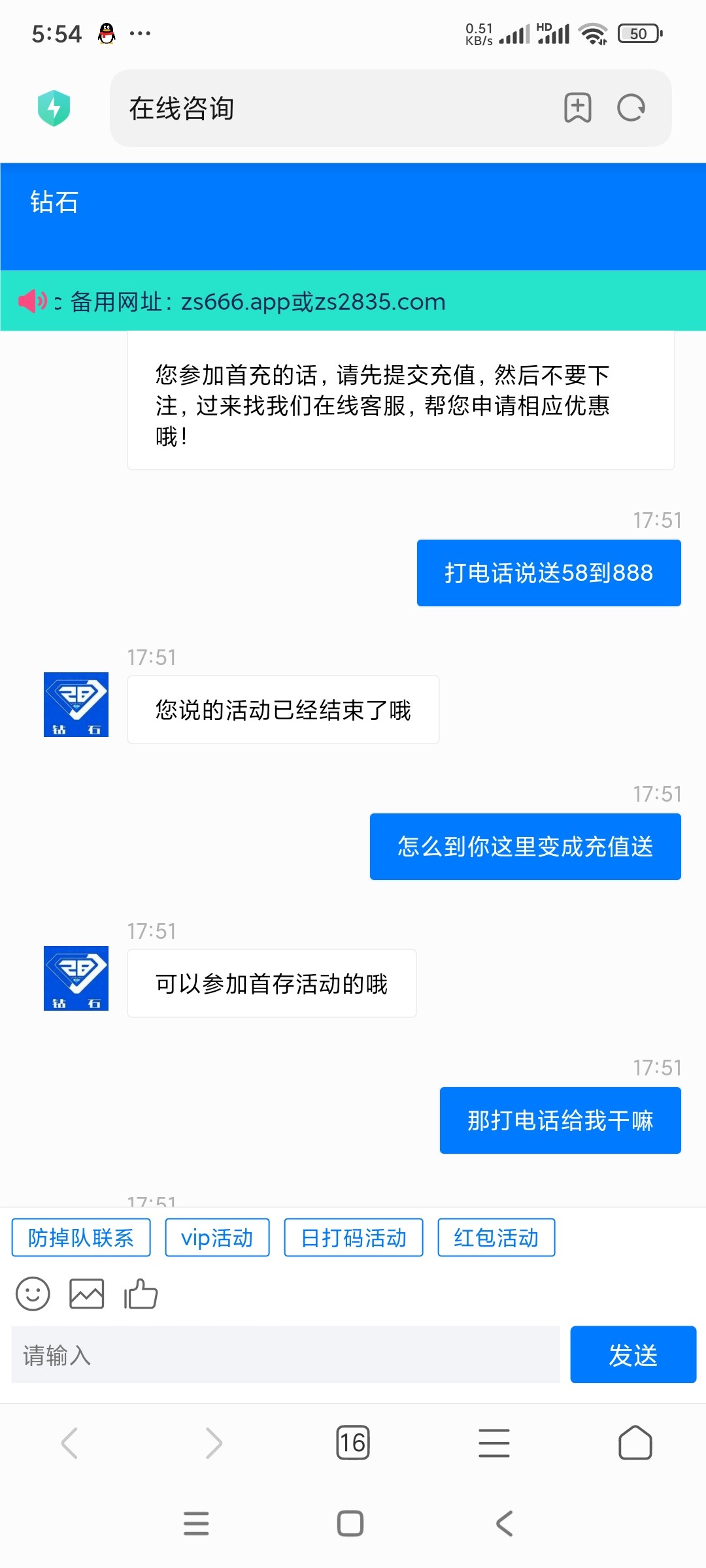 电话回访,一个机器人,我没有冲过,时不时就送个58,我没打出来祝各位老哥能碰到,网址 zs888.app
