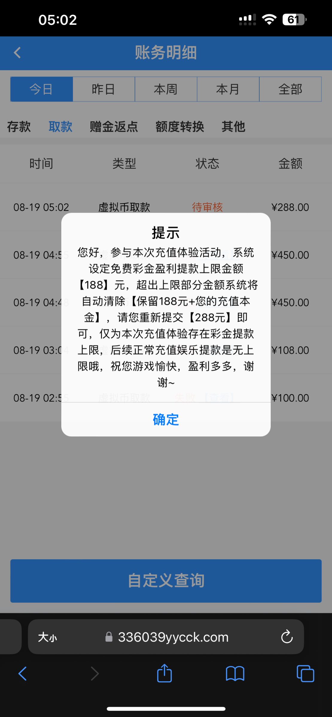 一点格局都没有 充100打了1500流水最后只能提188