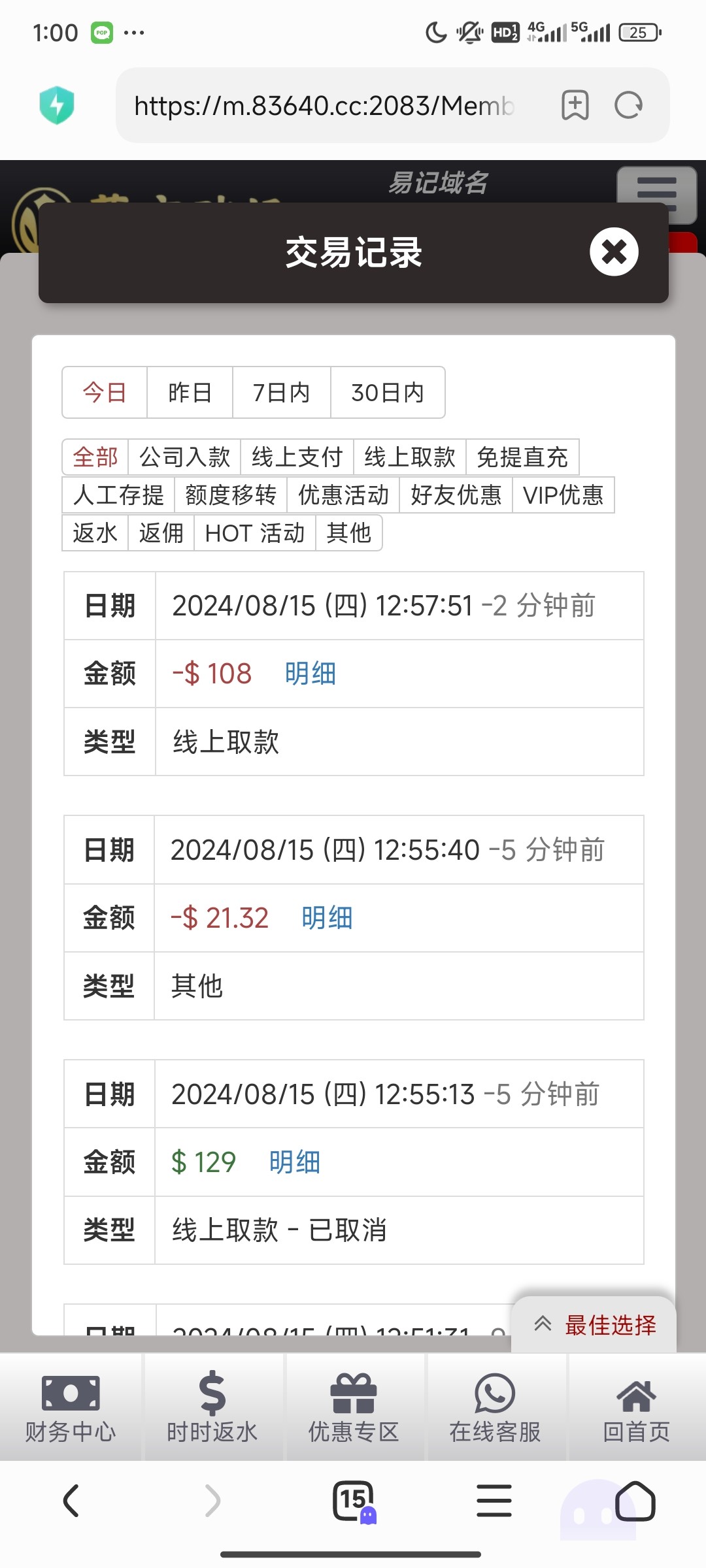 出款情况:自测(禁止充值)