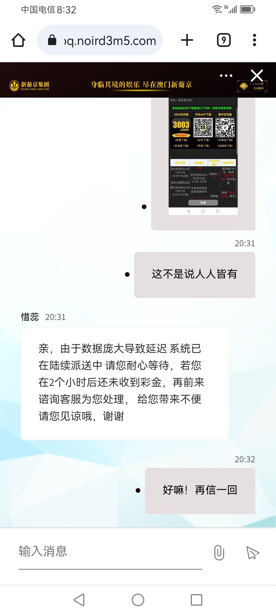 我的还没到账。找客服说19点30分还没到账,再去找客服