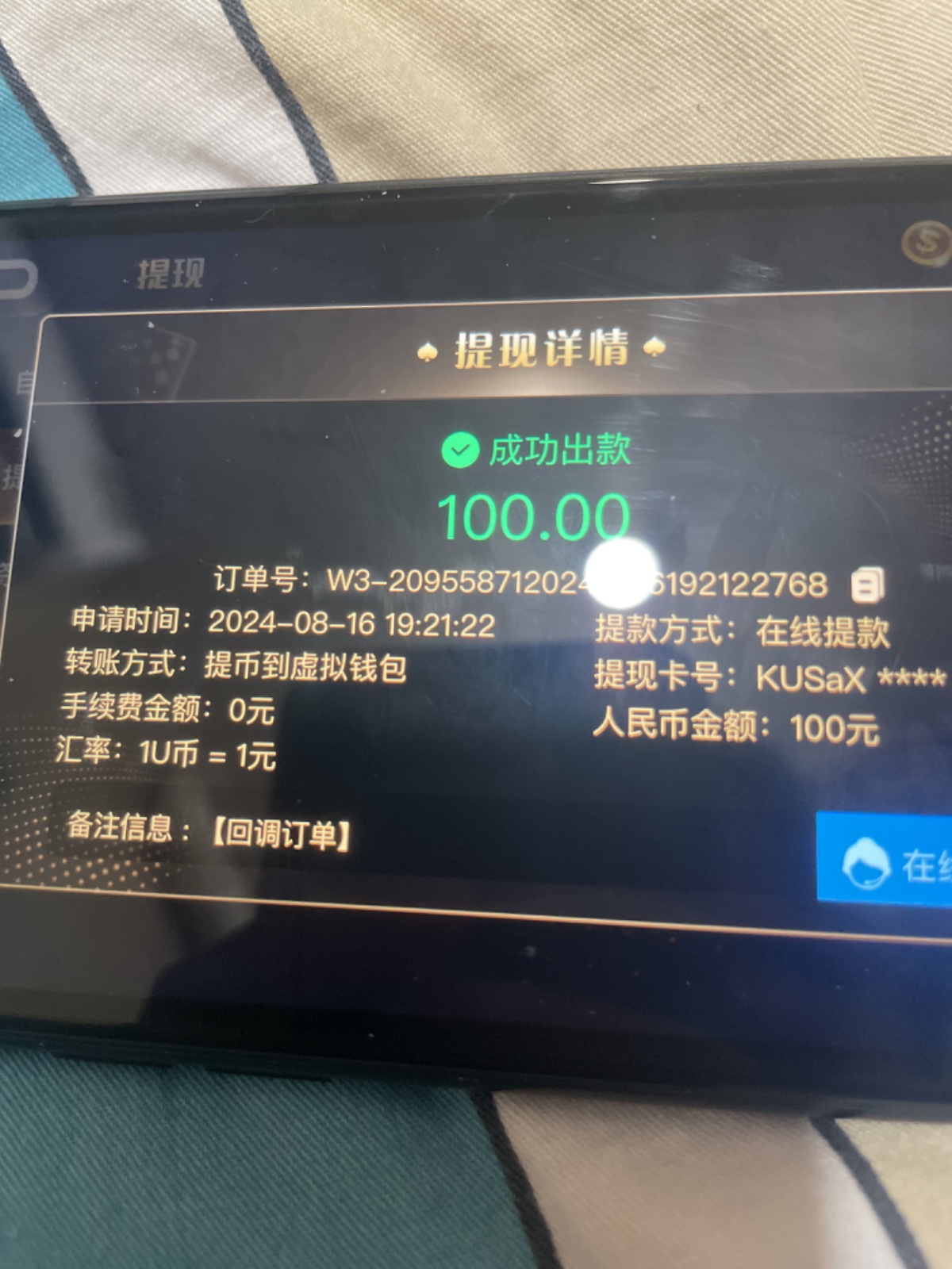 出款情况:自测(
