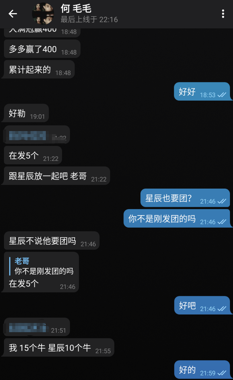 这2位老哥都眼熟,毛毛虫是刚团又追加了10牛 ,星辰最近在662 连红了几天 发15好运牛给兄弟们