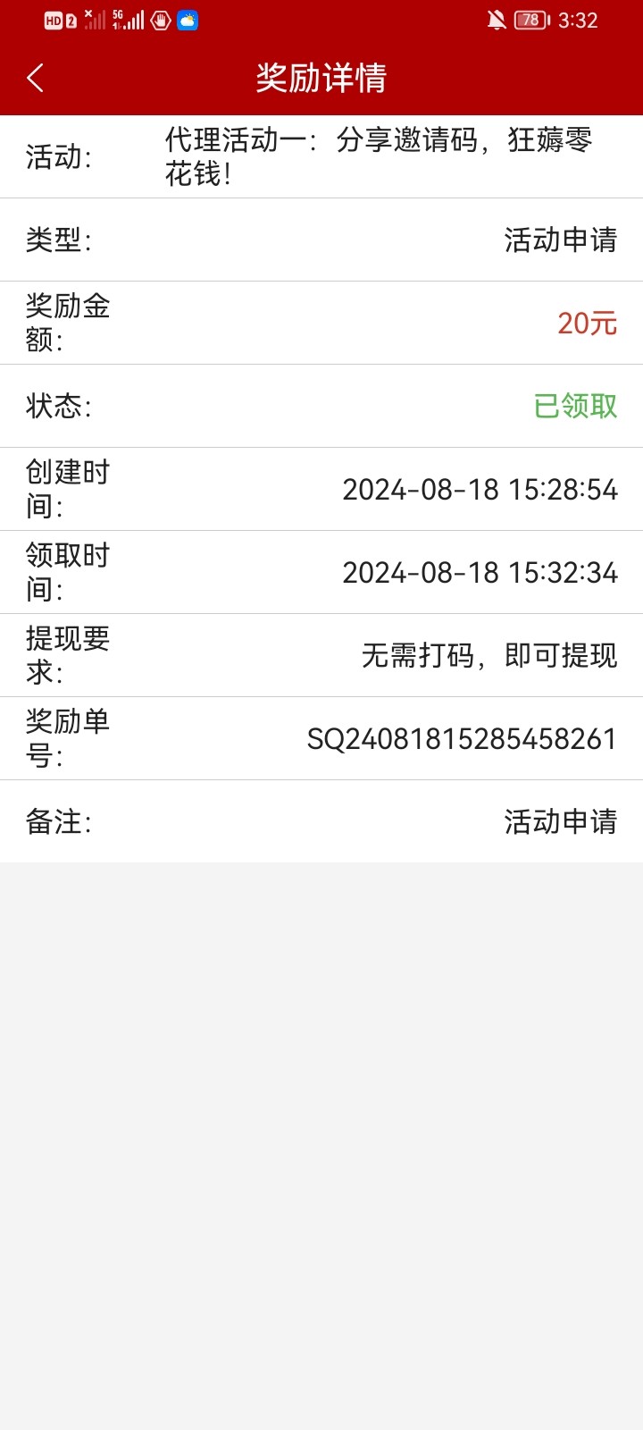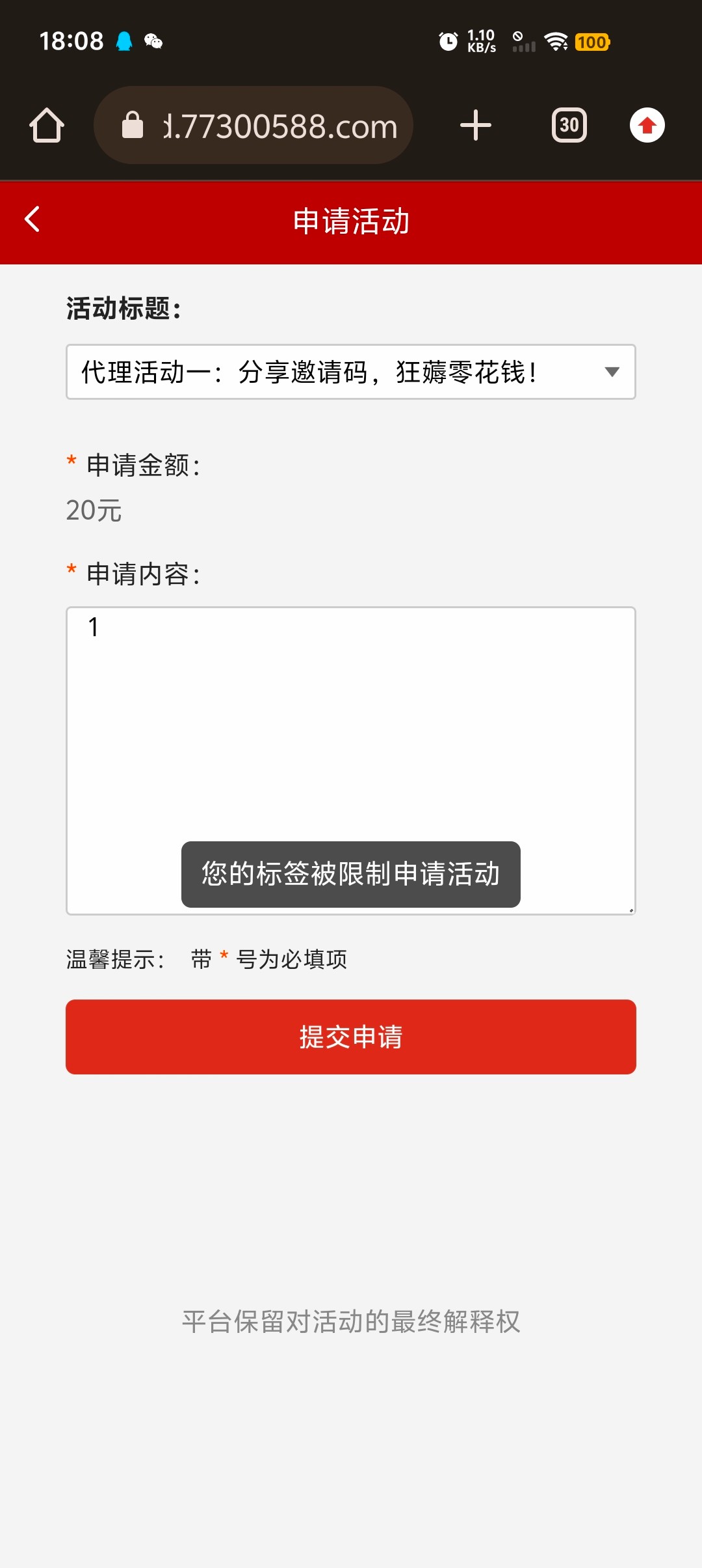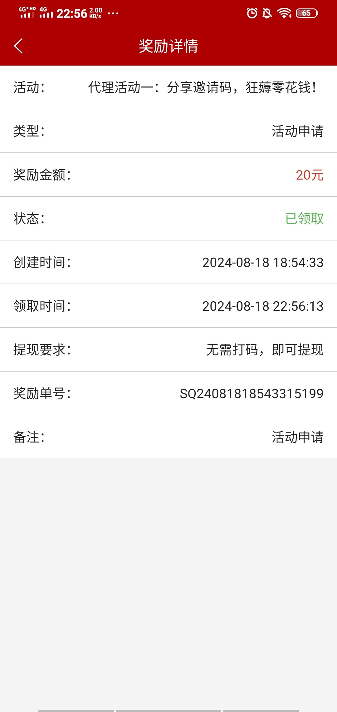 直接用自己的推广链接注册一个小号,然后去申请20,我秒到 地址 773.com