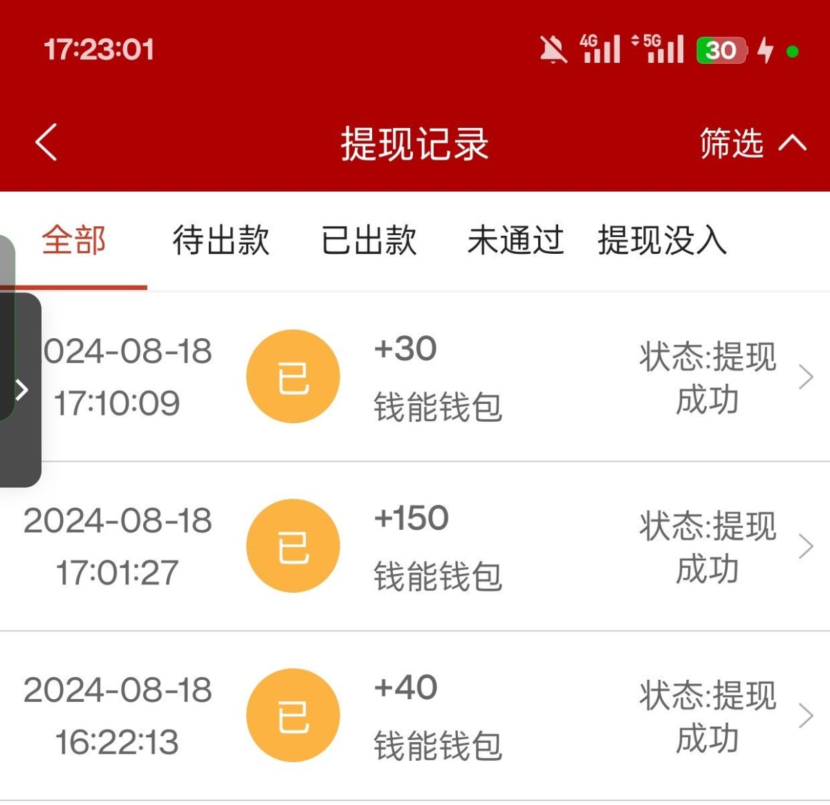 吃了点 白嫖的20提了40 剩下的14打上150怕不给出充值了20又提了180 吃了200 有钱交电池钱了