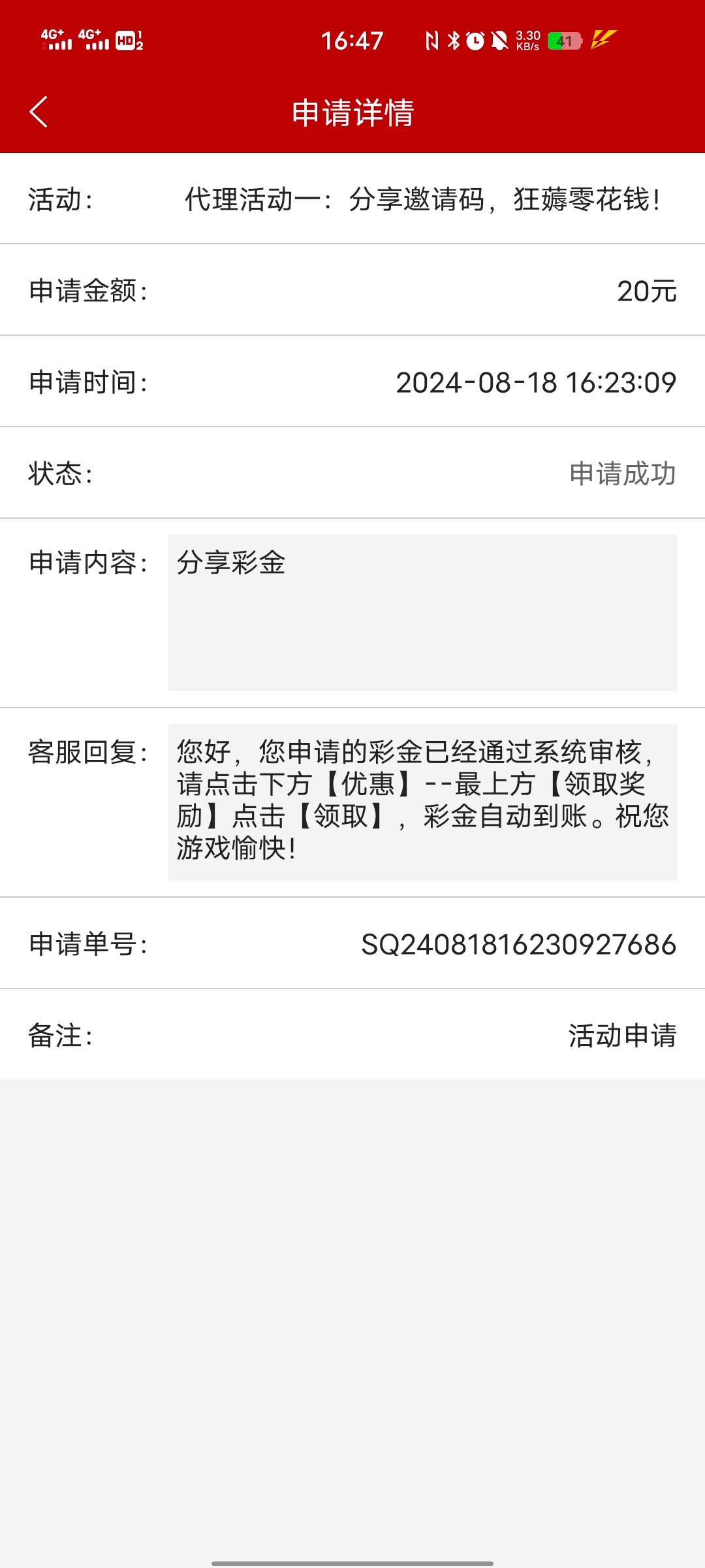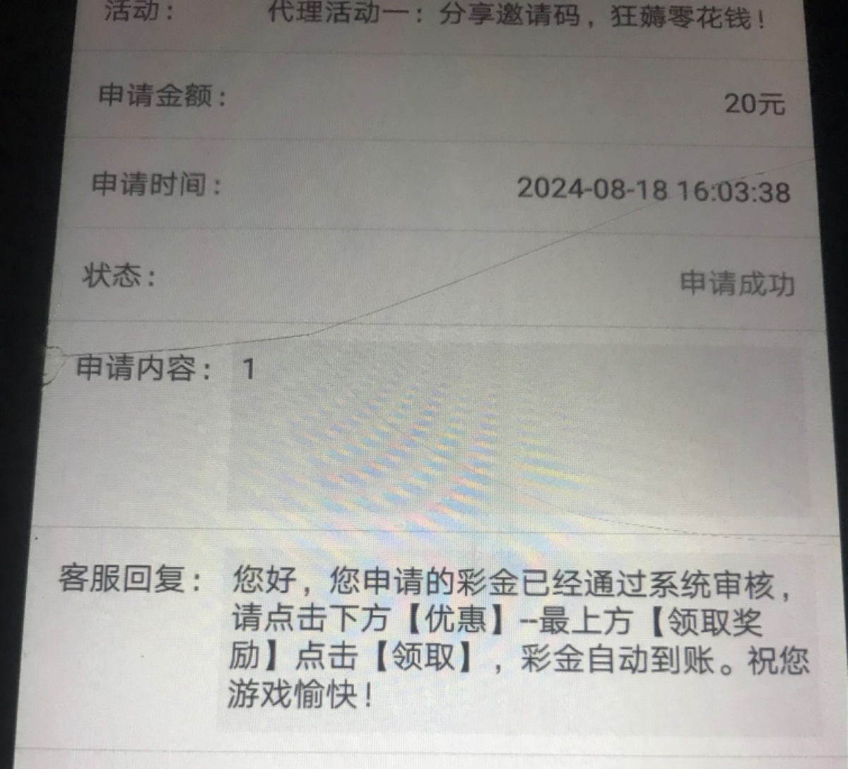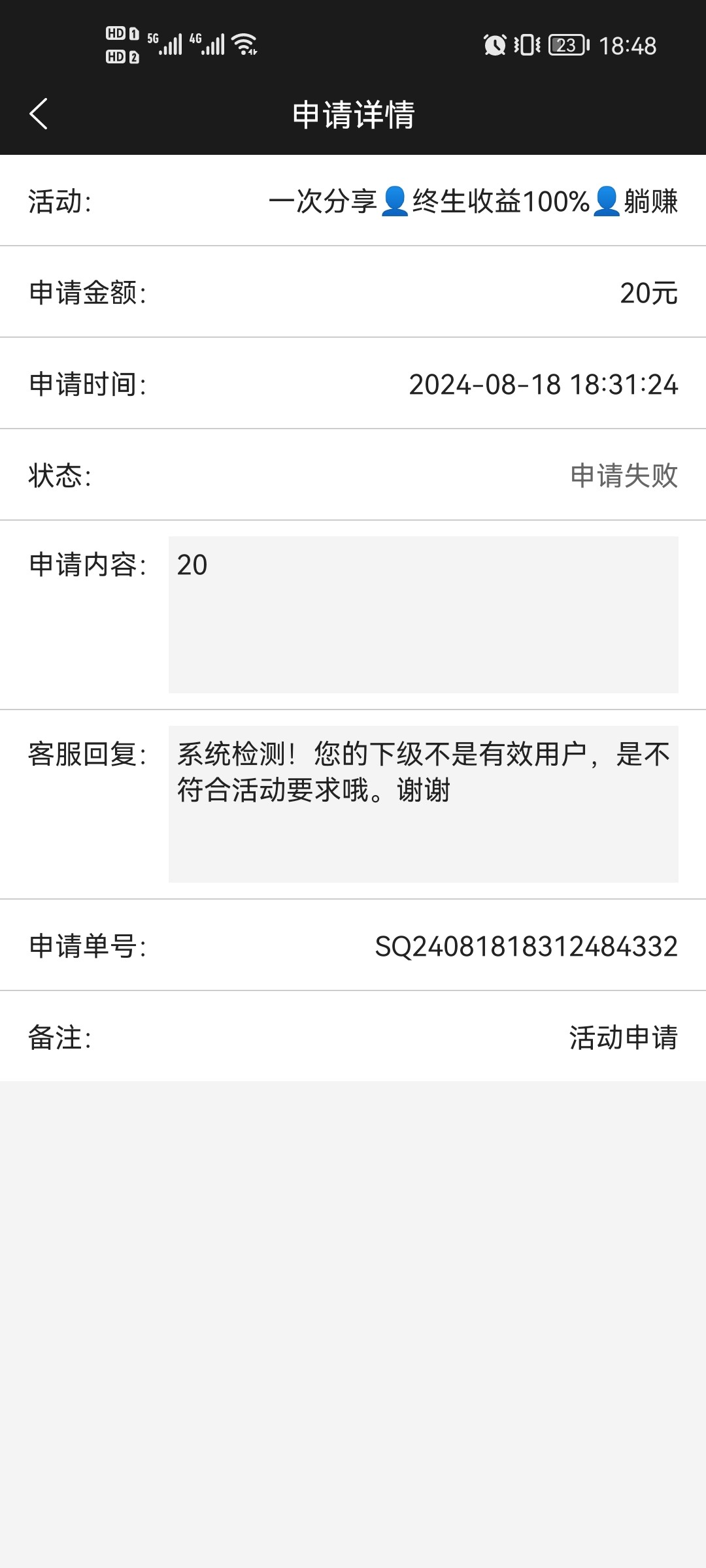 亲,查询到您的下级活跃度不足,因此无法为你派送彩金,请您后续再来申请呢