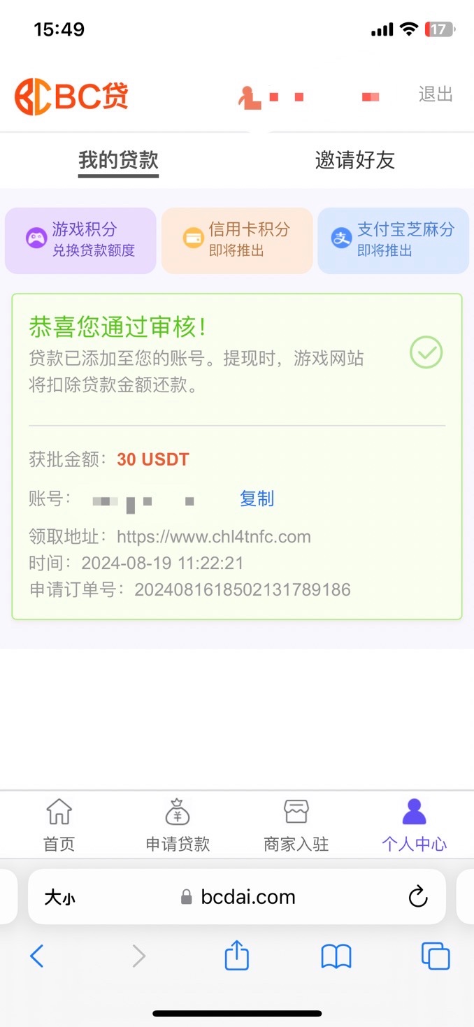系统自动扣除贷款额度自动提交取款了。应该稳了。