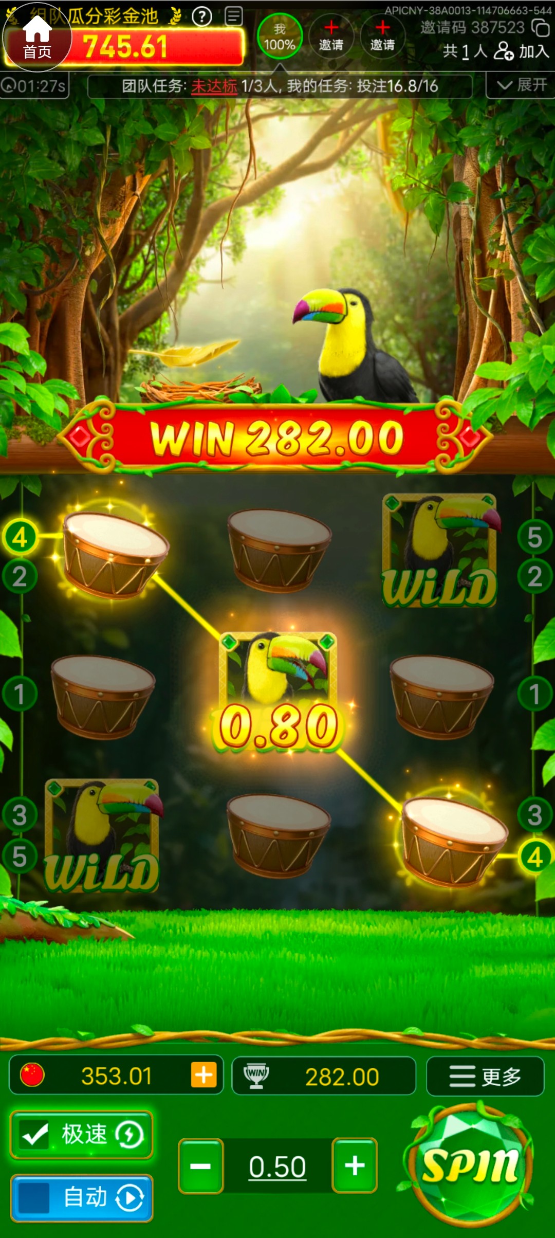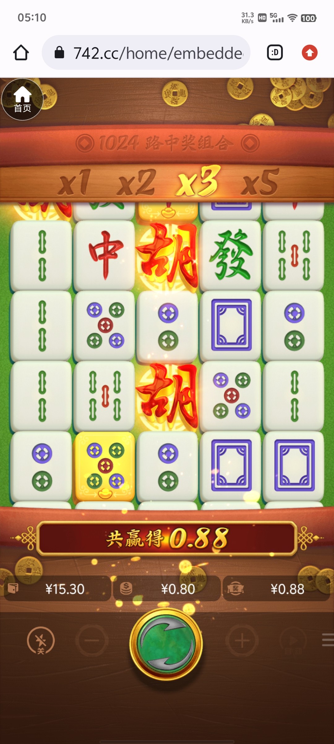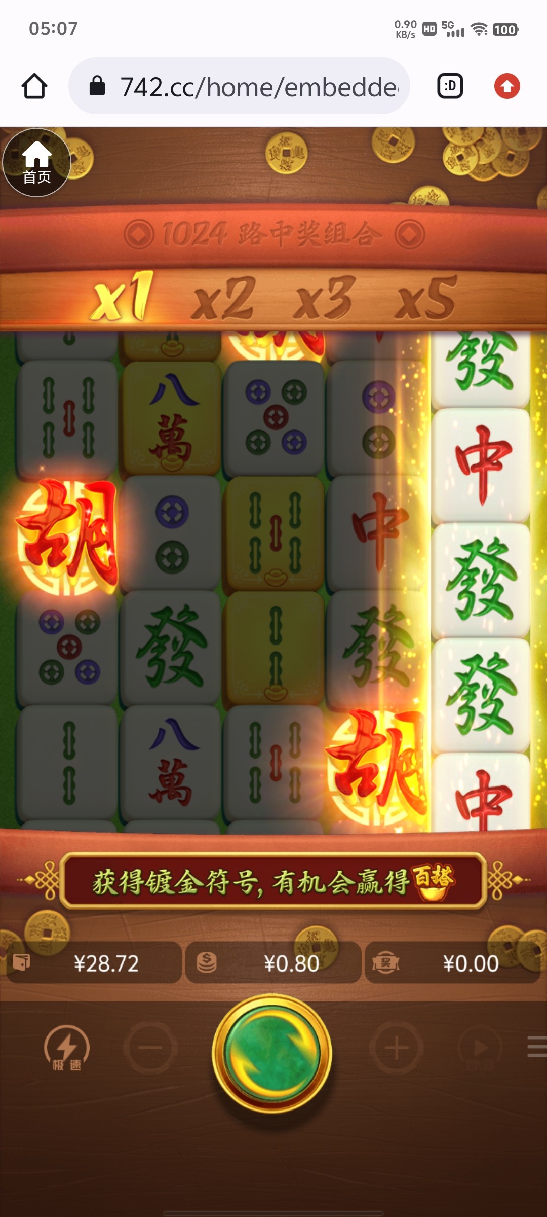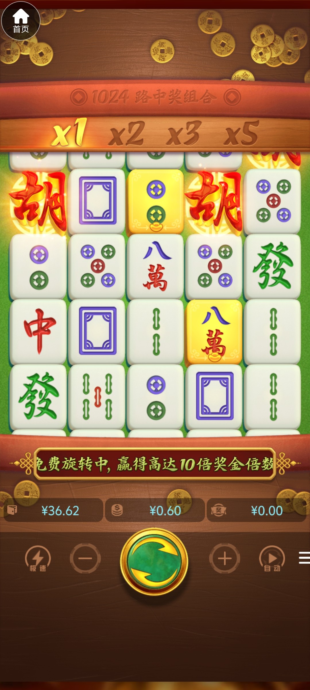 742,前几天特邀碰瓷,主号成功,没打出来。就注册了个小号,然后今天小号来短信,直接手机号登录领取成功,磨了一小时麻将,一直都是几十倍。最起码进了6次免费,1次免中免。最高也就130,然后反复70-110徘徊,最后一手免中免上120跑路。现在出款中。出款成功就再注册个号等特邀。