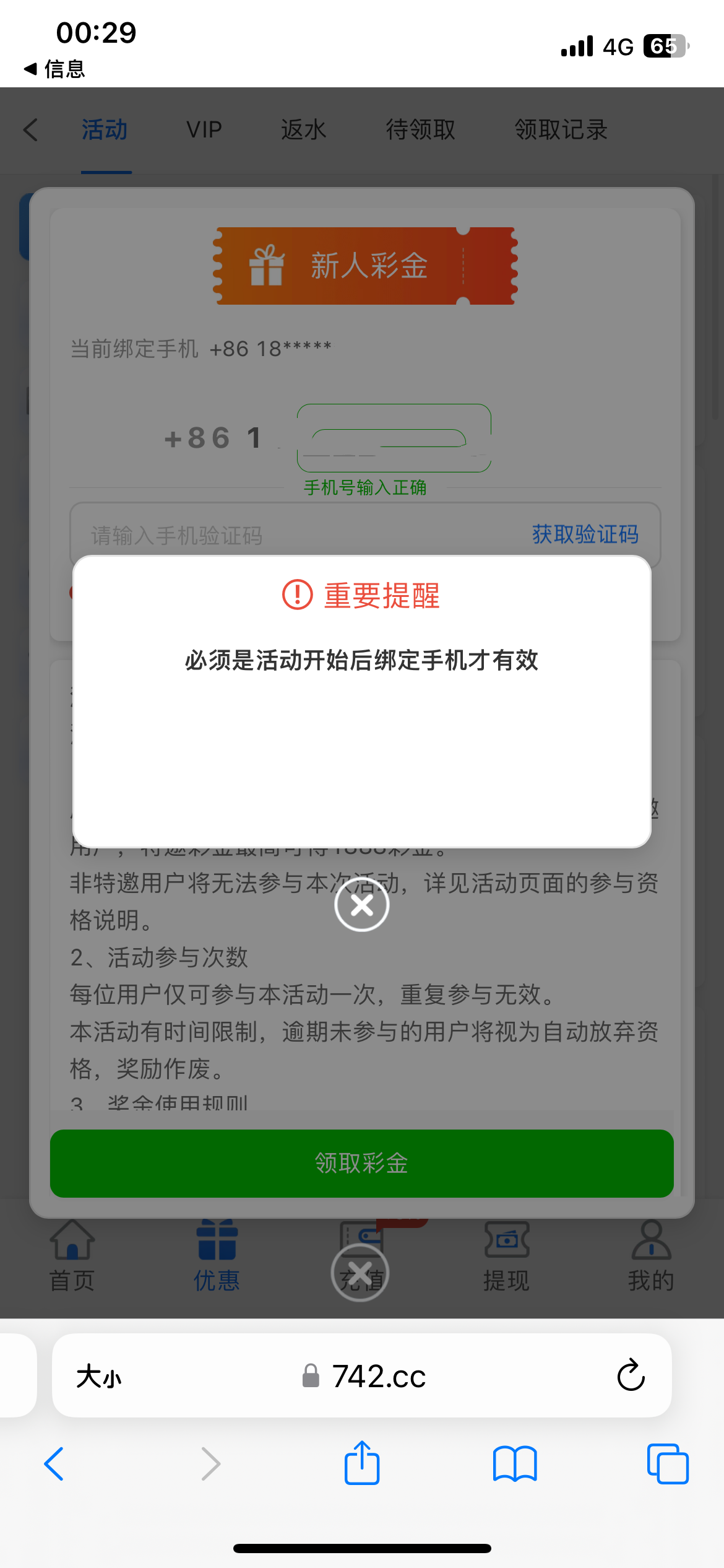 qq121013 ▶ 咦咦咦咦咦咦咦 第1个号也是注册了没给第2天显示活动开始后绑定有效,等了两天后面那天又看到你发进去得了,昨天又注册了一个,绑定了手机号,下午来电话了。去领又显示活动开始后绑定有效。搞不懂这个特邀 2024-8-23