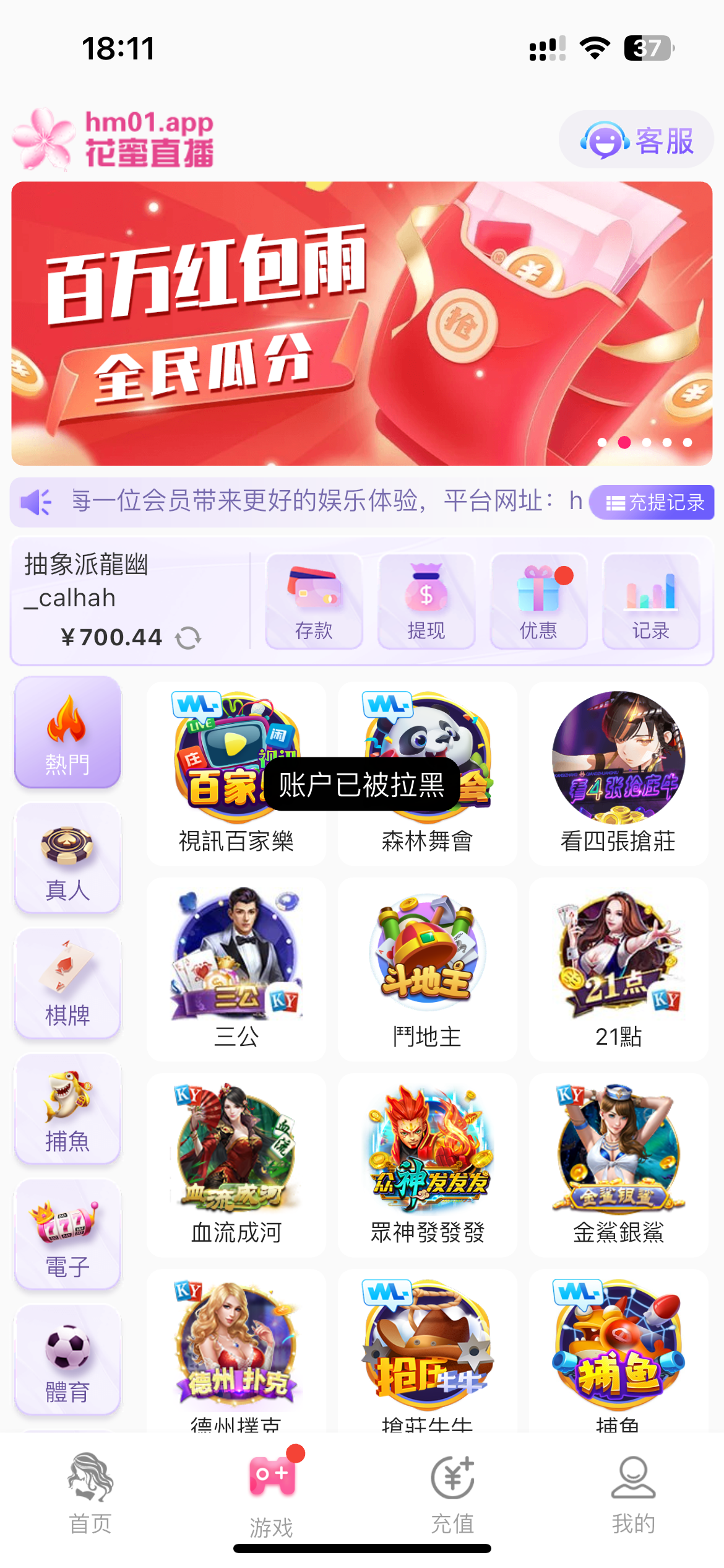 电话特邀充值100送36 第一次提现说要求银行卡 第二次提现不明不白罚我流水 然后打到700第三次提现说我套利 直接把我账号拉黑