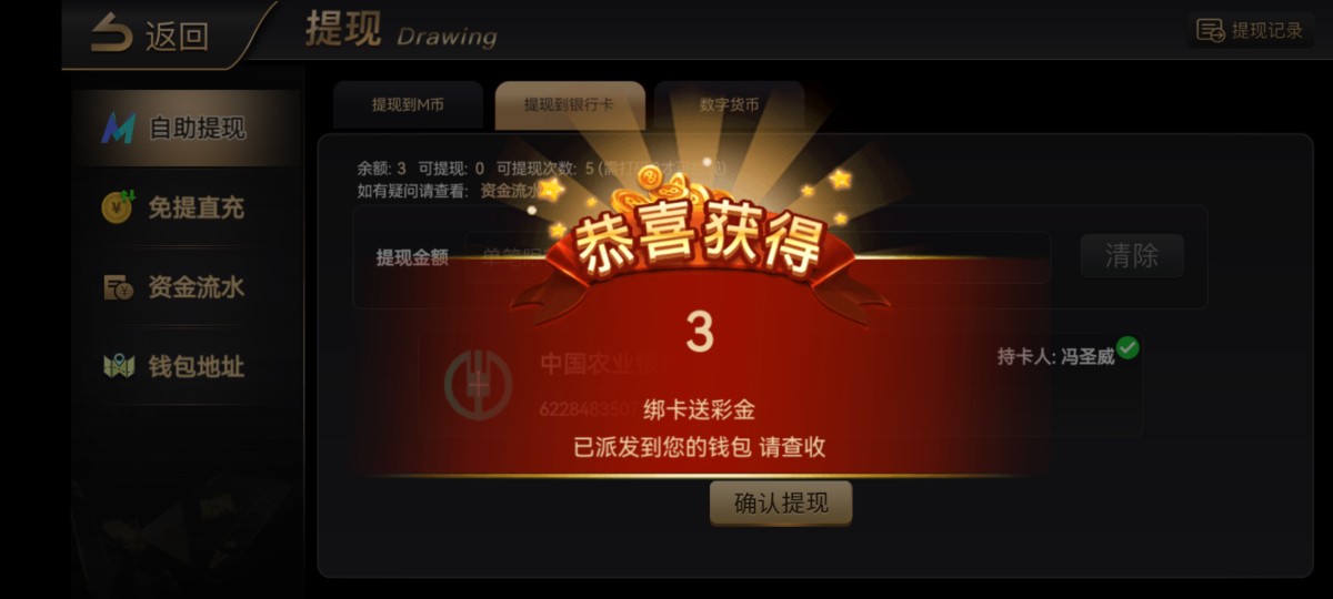 赌神们冲啊。绑卡就送3。我没打出来。你们赌神打吧。