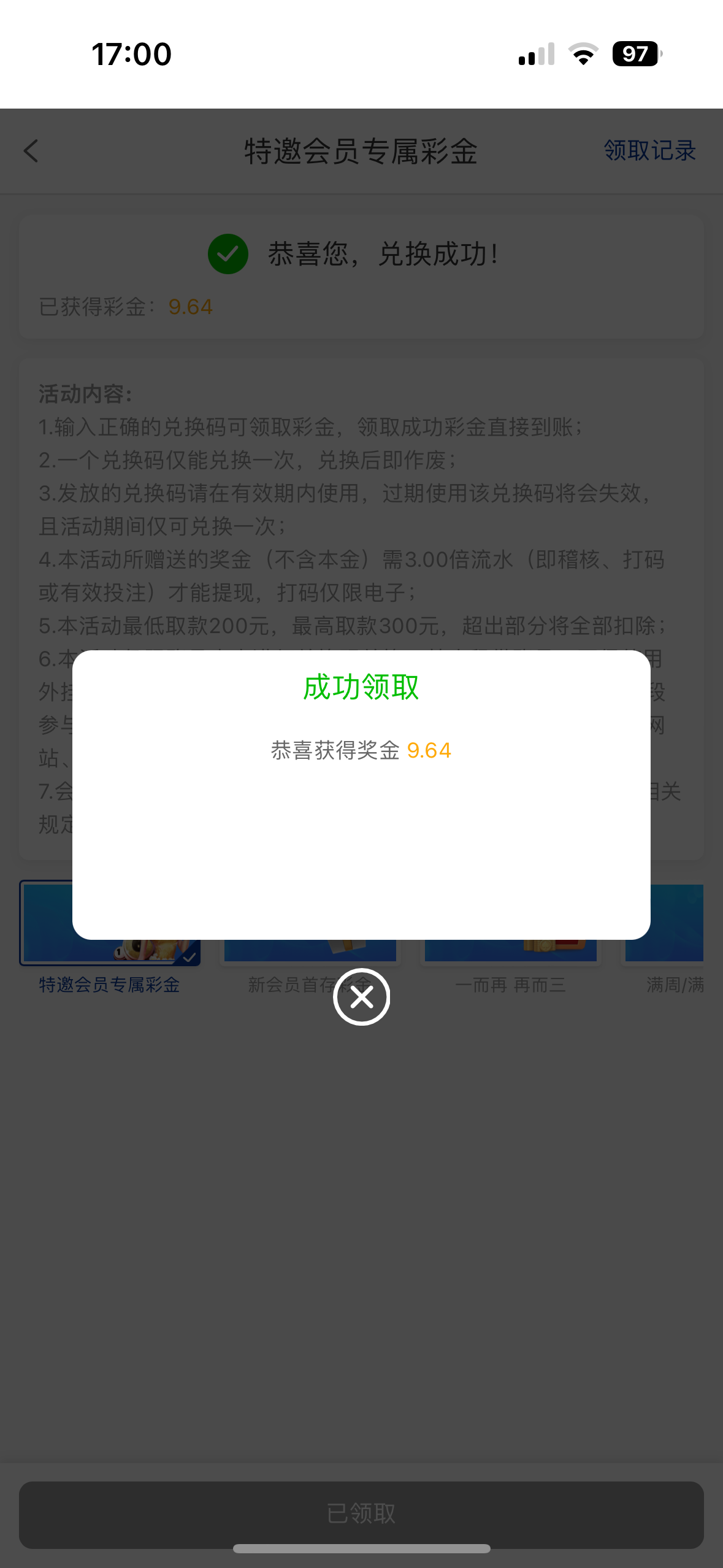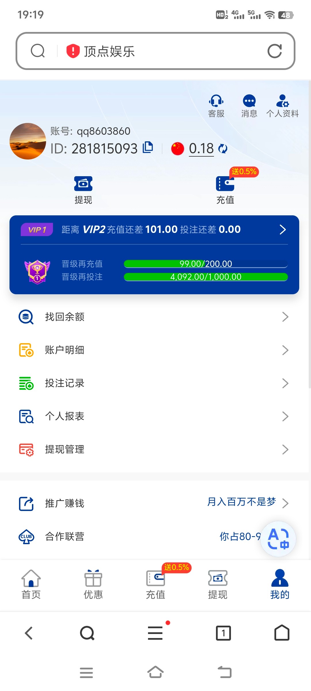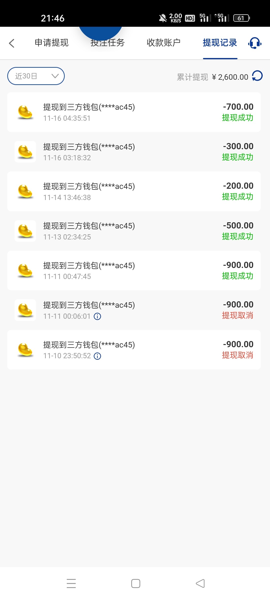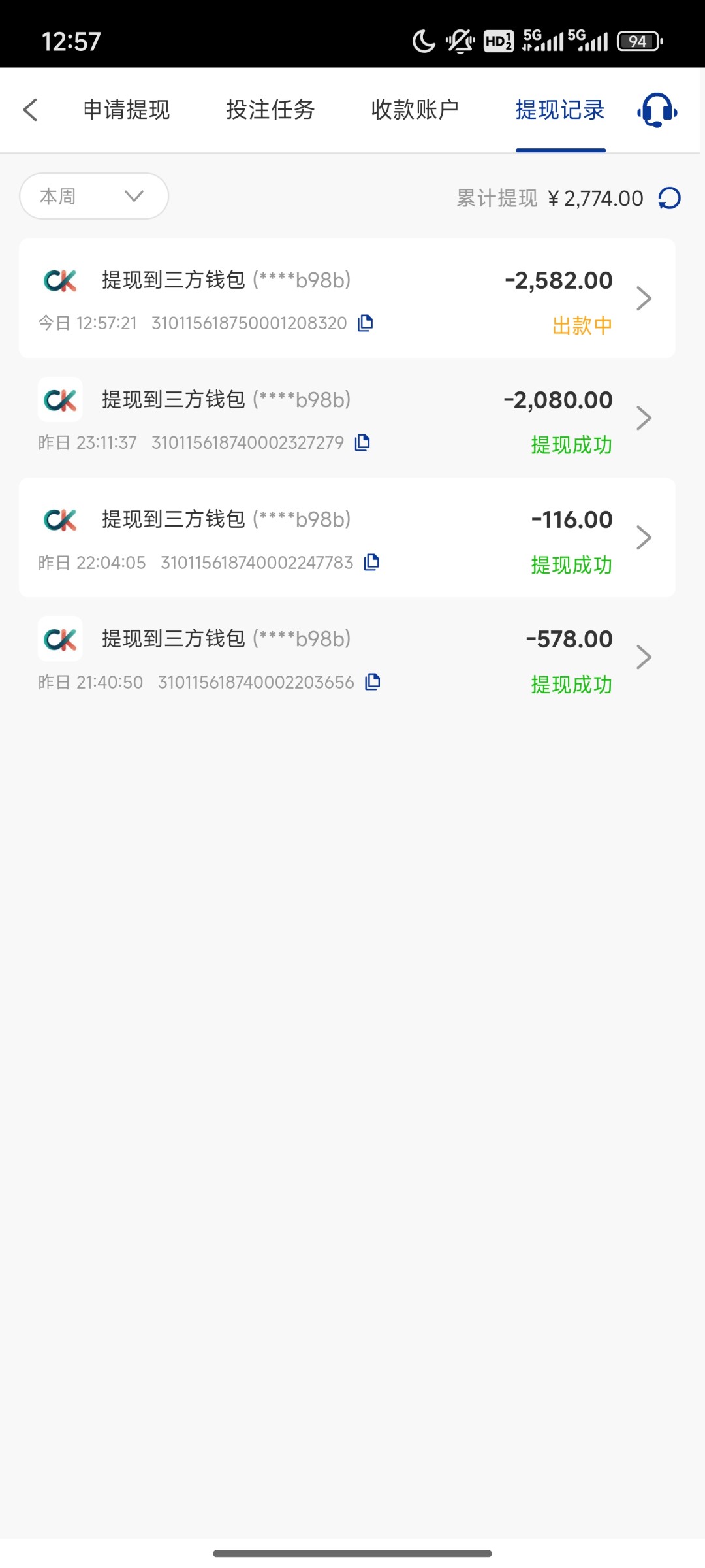 吃上了。一直两块磨赏金女王,打了1200流水也可以提现成功