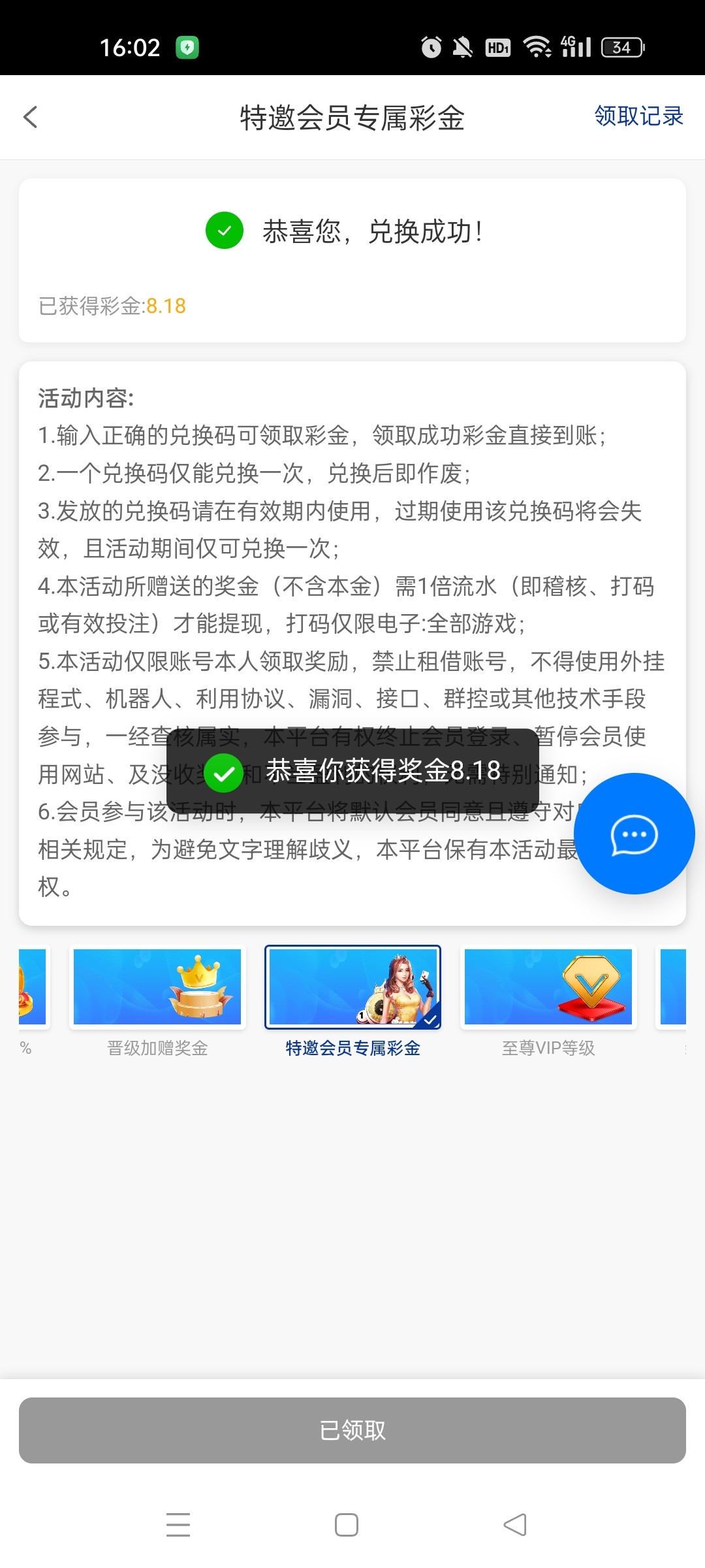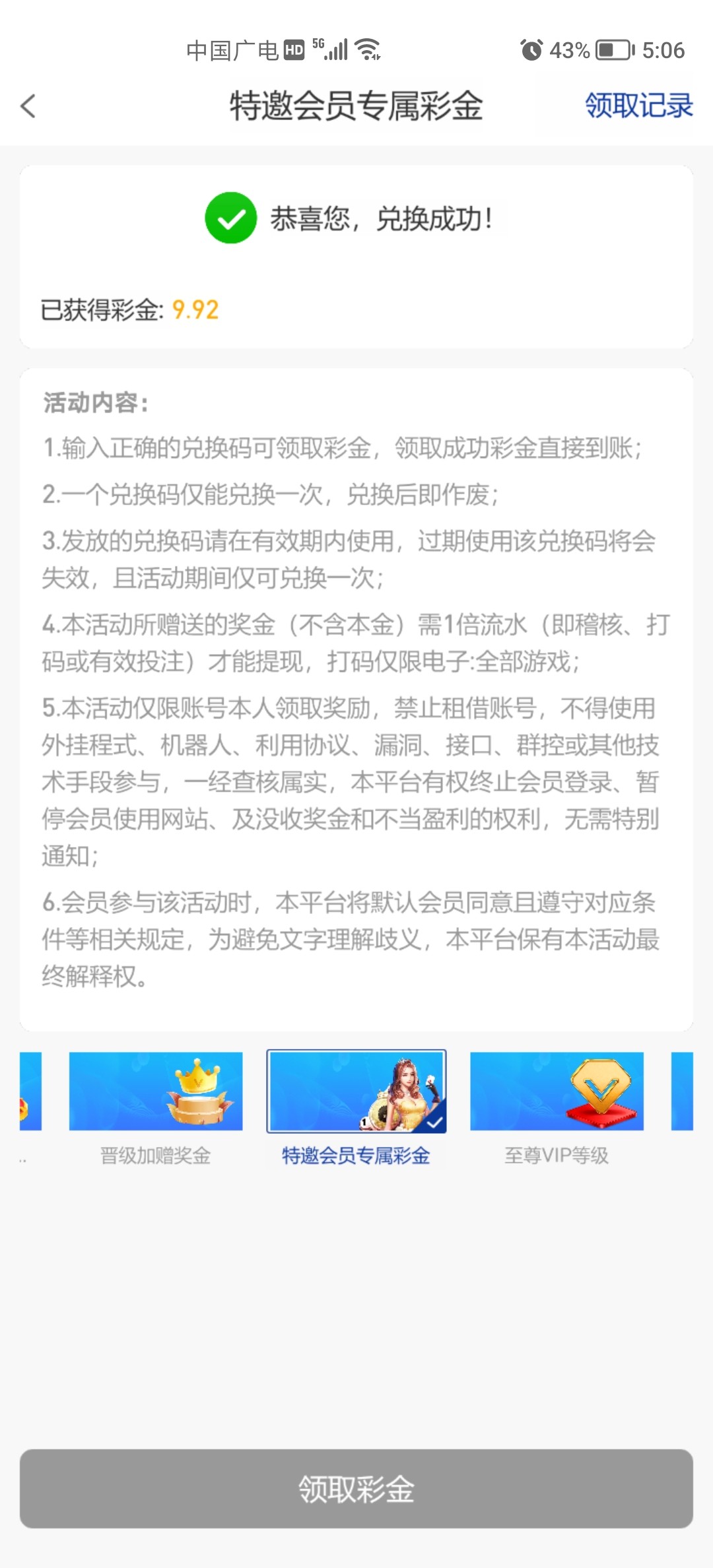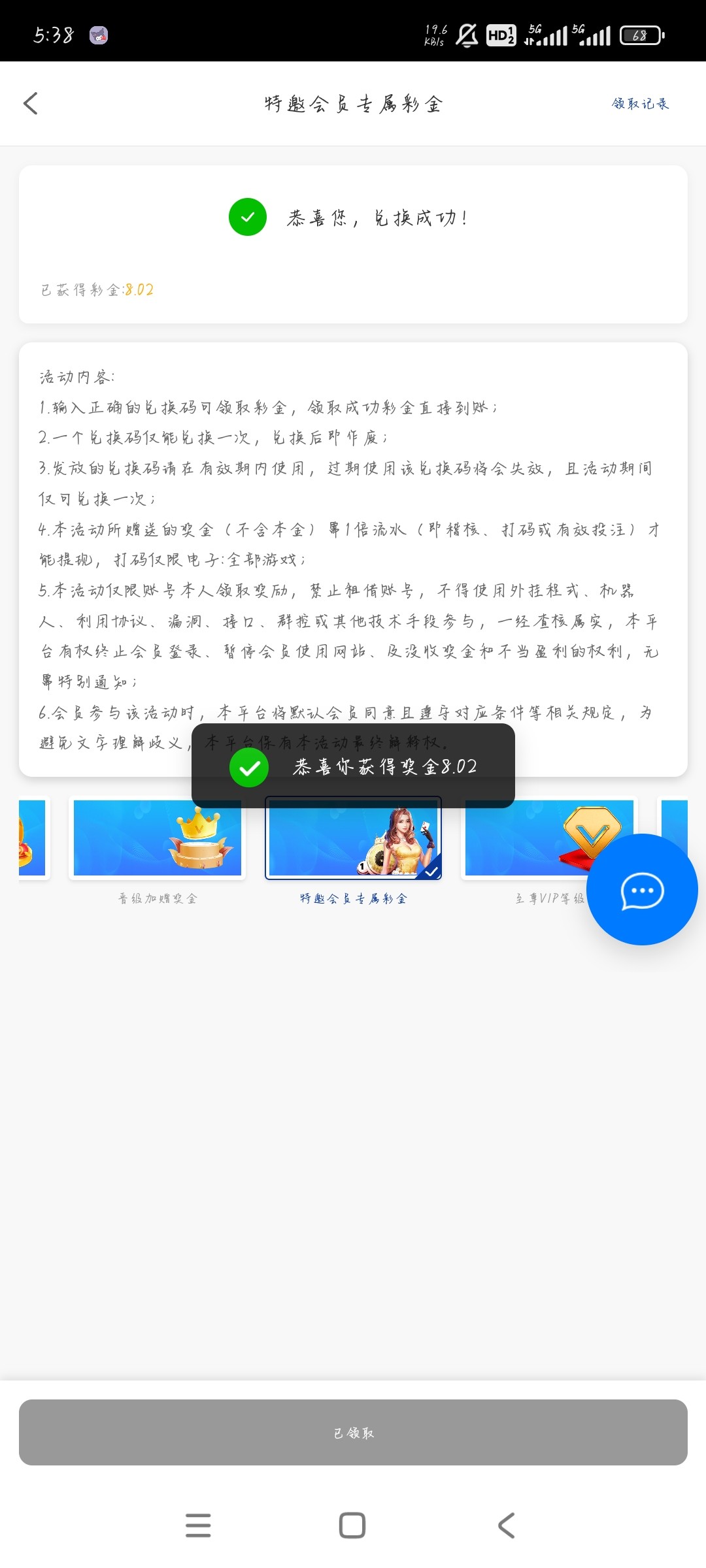 领取到了