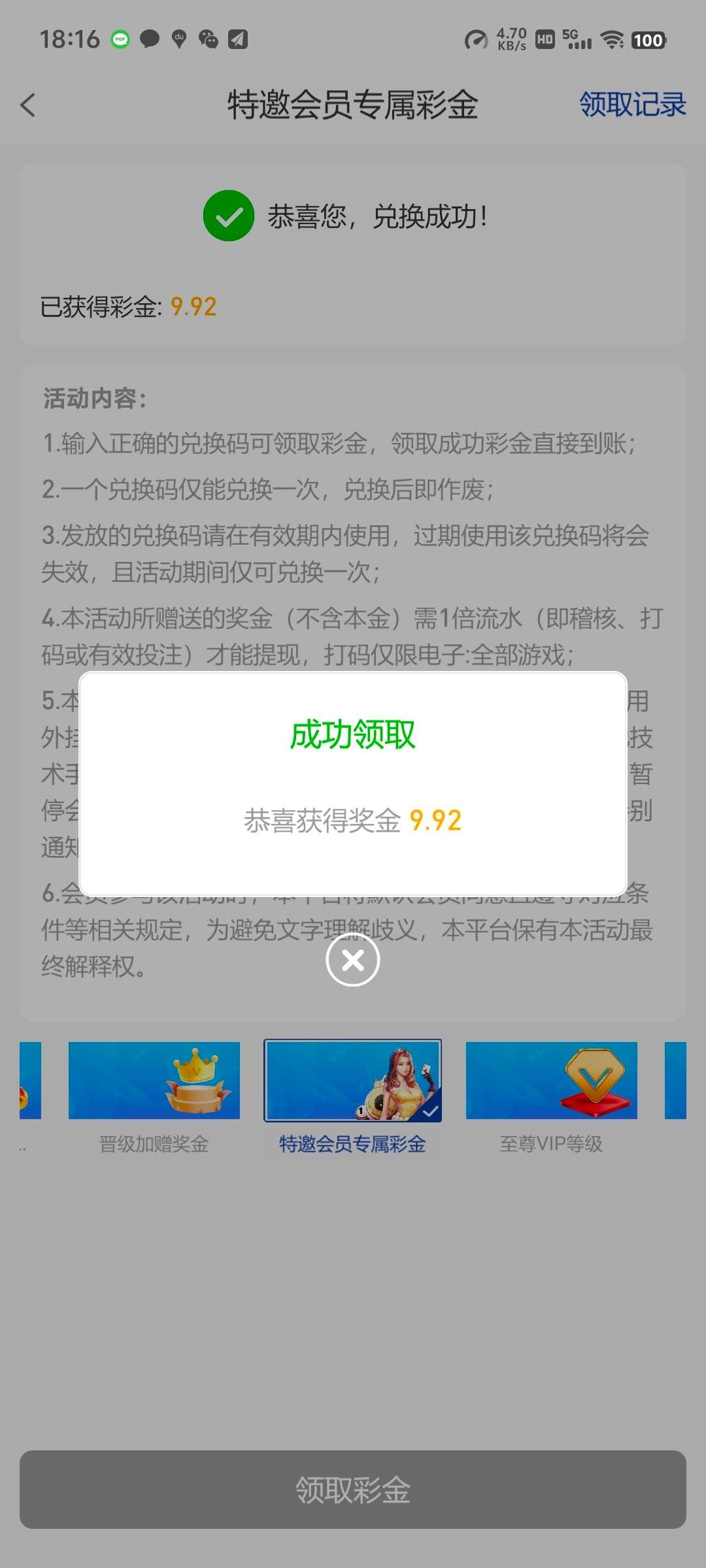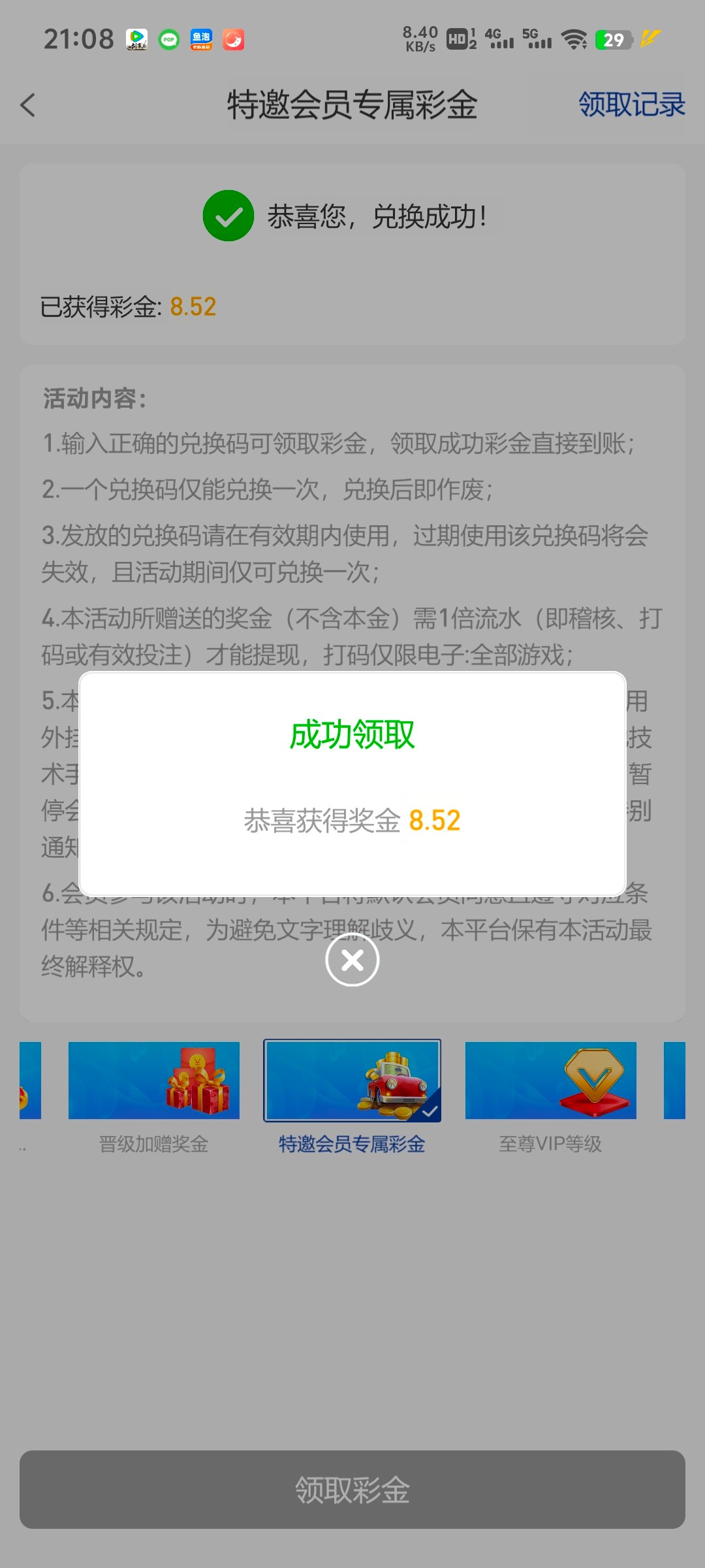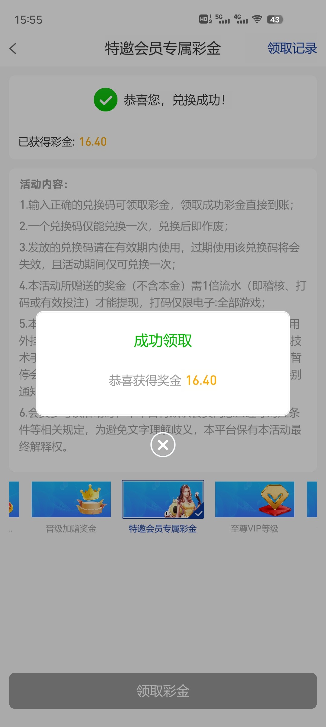 领取到了