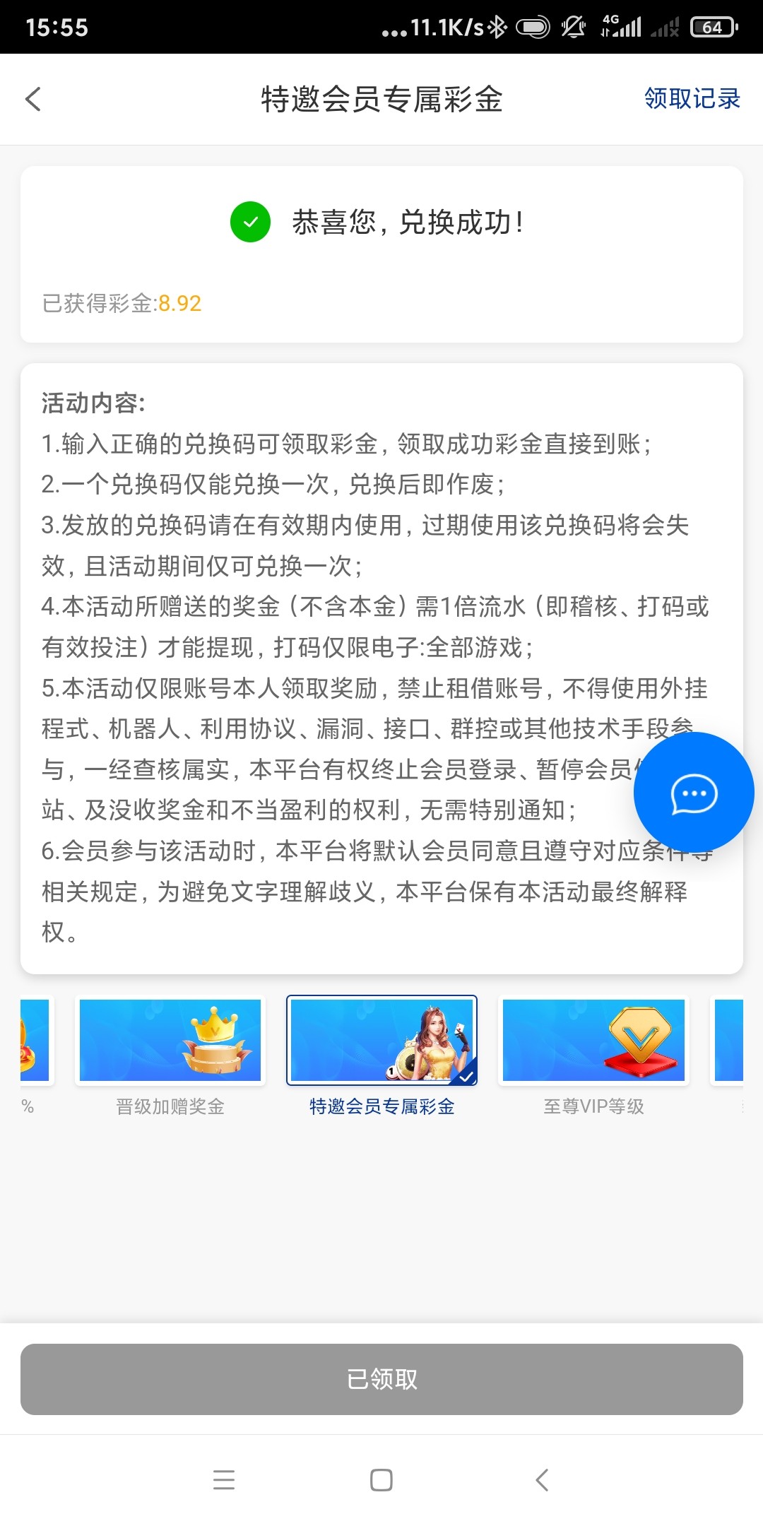 领取到了,谢谢老哥