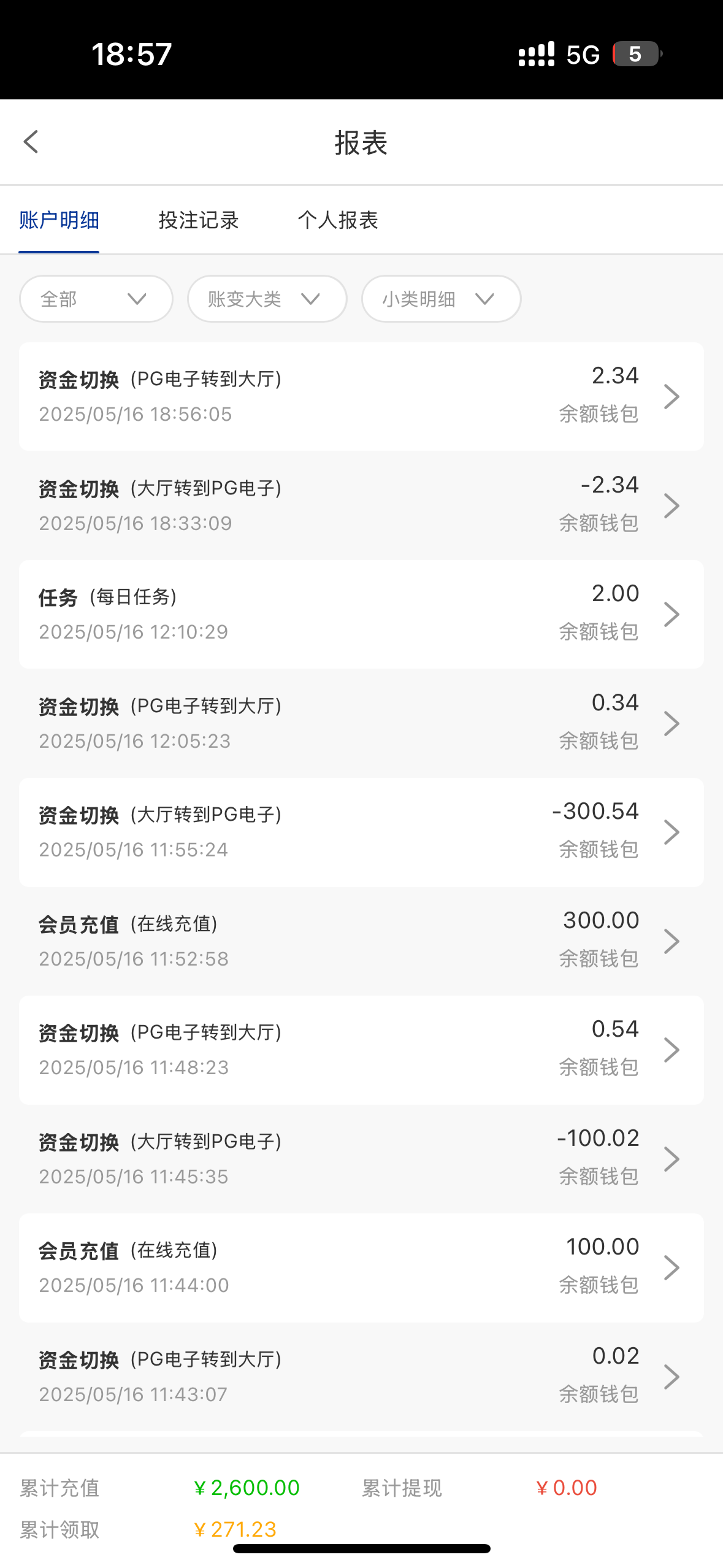 就充值500。直接6块拉麻将2。拉了应该有半小时。进胡3次,一次几倍,一次90多倍,一次200倍左右。平拉最低输到还有小300块。然后平拉炸回差不多500。就开始进胡。3次胡,一次免中免总的最高上到2260。输回到2100多就提现了。这台子刚出就注册了,今天才第一次充值。500提现2100多,赢1600那样。提现20分钟到账。