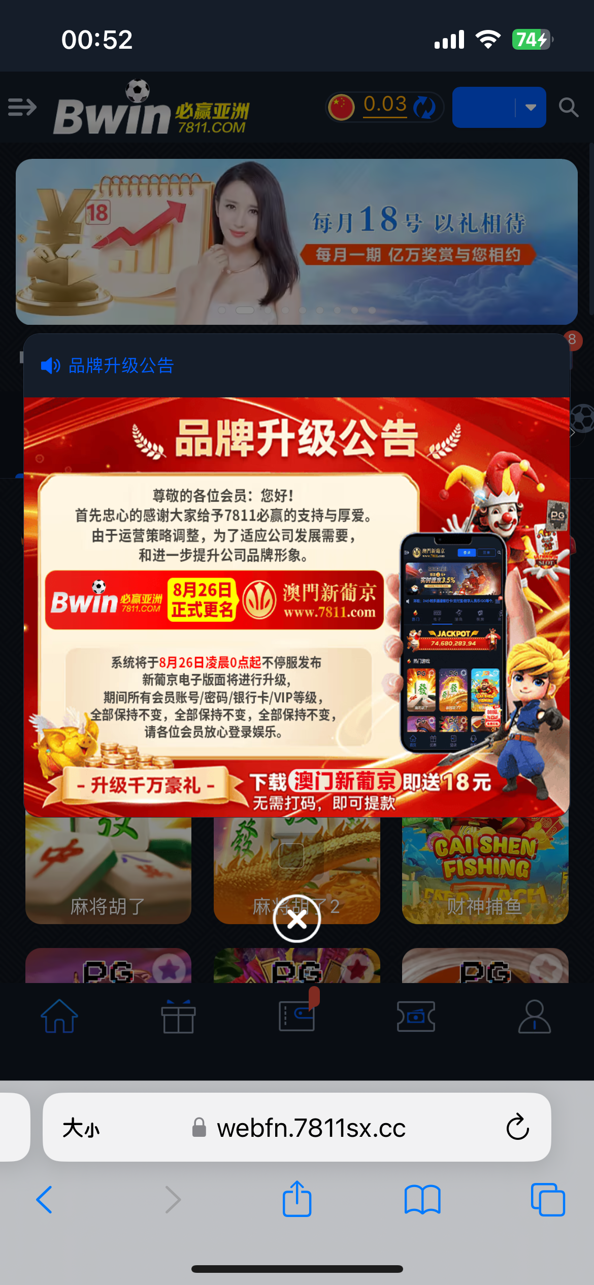 26号升级 可以多注册几个号 新老都能参与,到时候撸到的老哥记得来帖子反馈一下 地址 7811.com