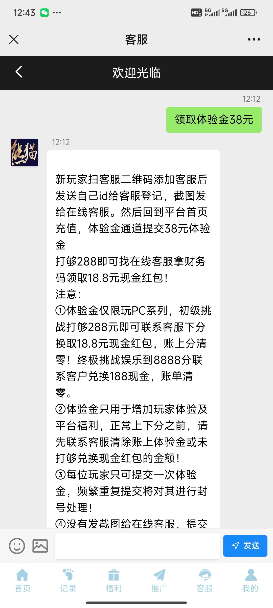 微信h5加拿大 领体验金需要加旺旺截图给平台客服,加旺旺是秒过的不嫌麻烦去