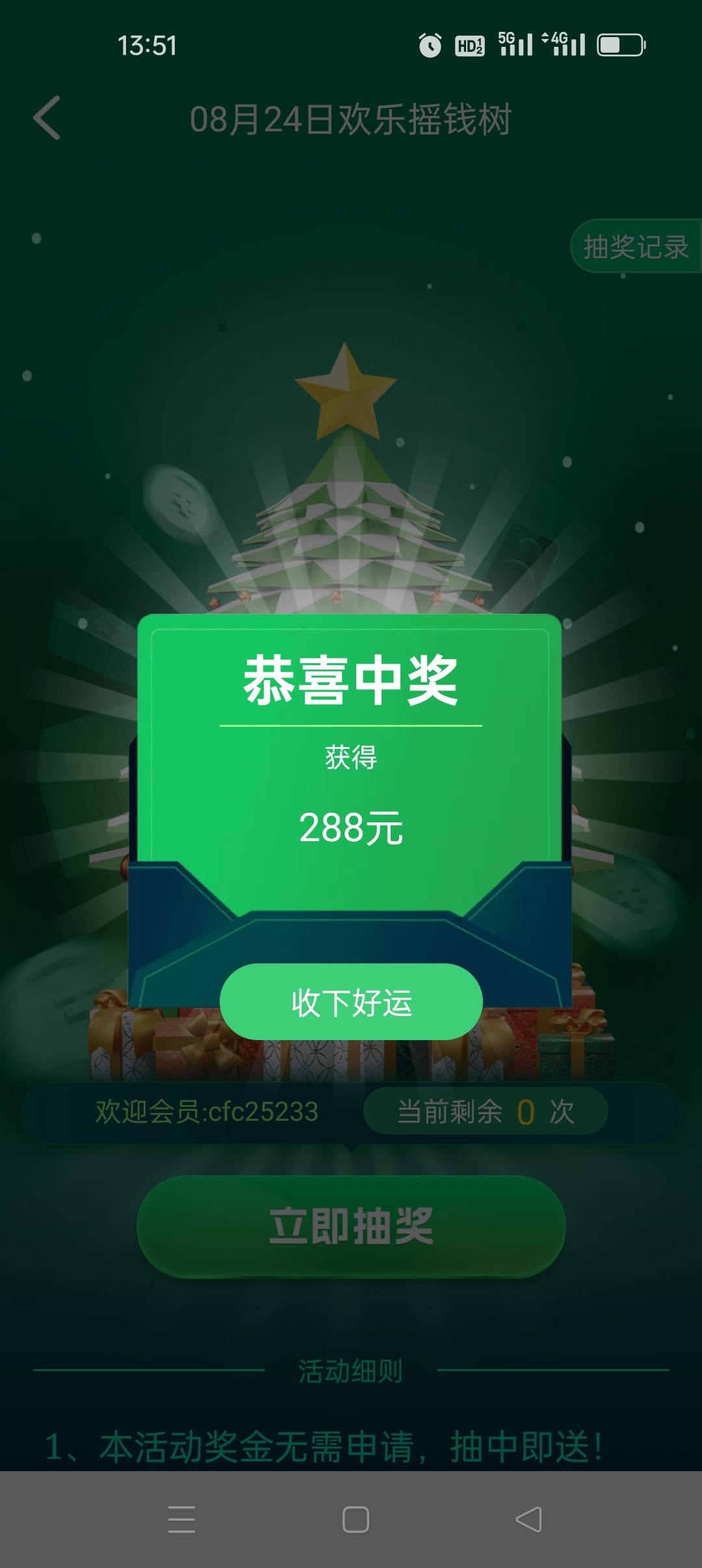 中奖了1336摇钱树摇出来288,头一次分享一下喜悦