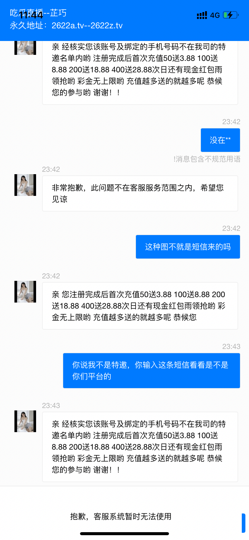 日了,今天刚来的短信去问是特邀一直不送,直接给我关闭聊天了看来被冲黄了