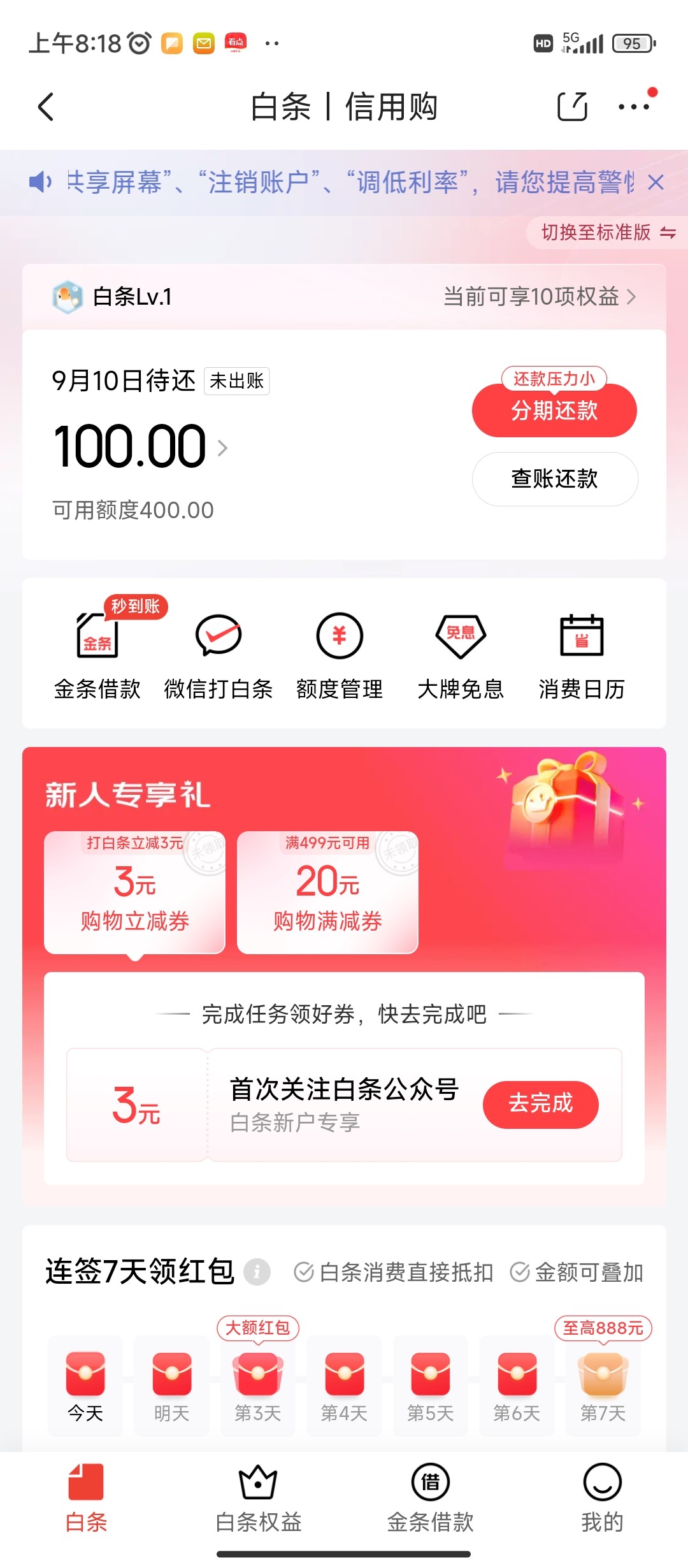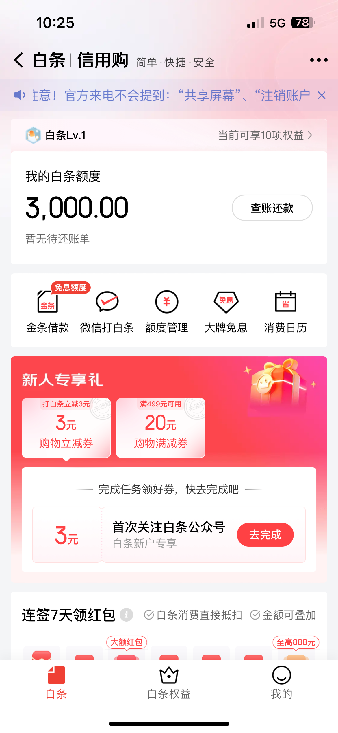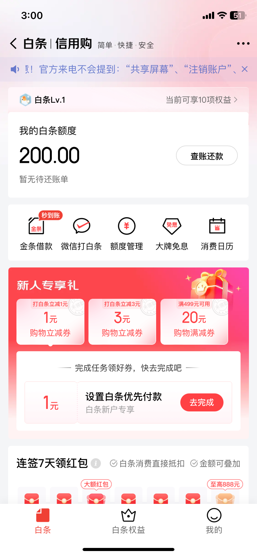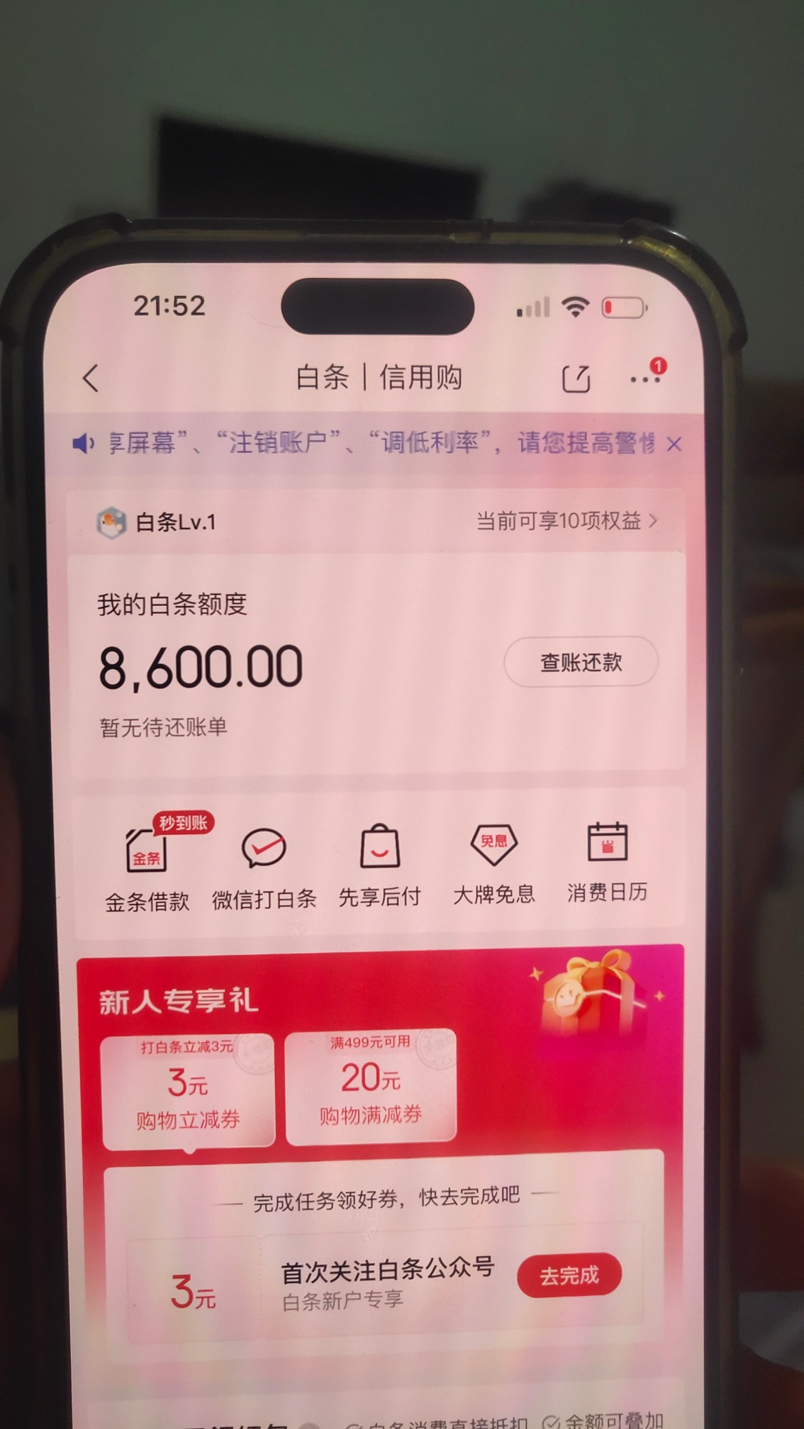 @达康书记下海了 ,我的现实600额度,但是打开白条只有200