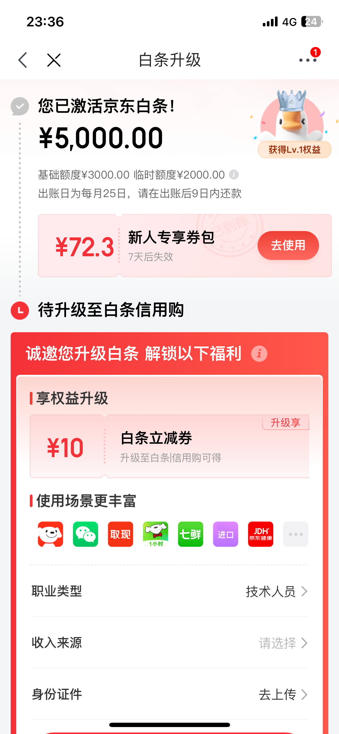 然后付款用京东白条付款,会跳出来白条信用购,开通就行