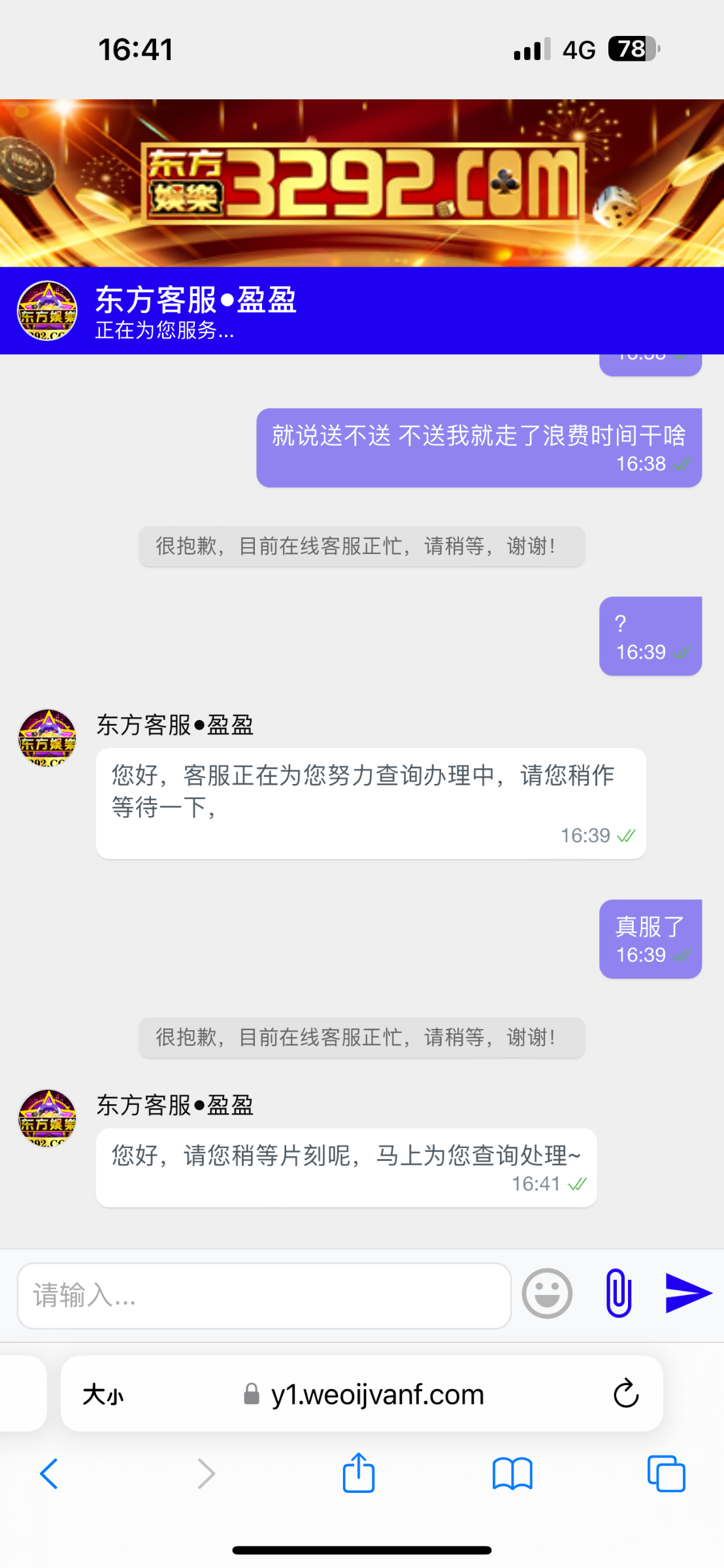 关键快一个小时了,也不敢问客服
