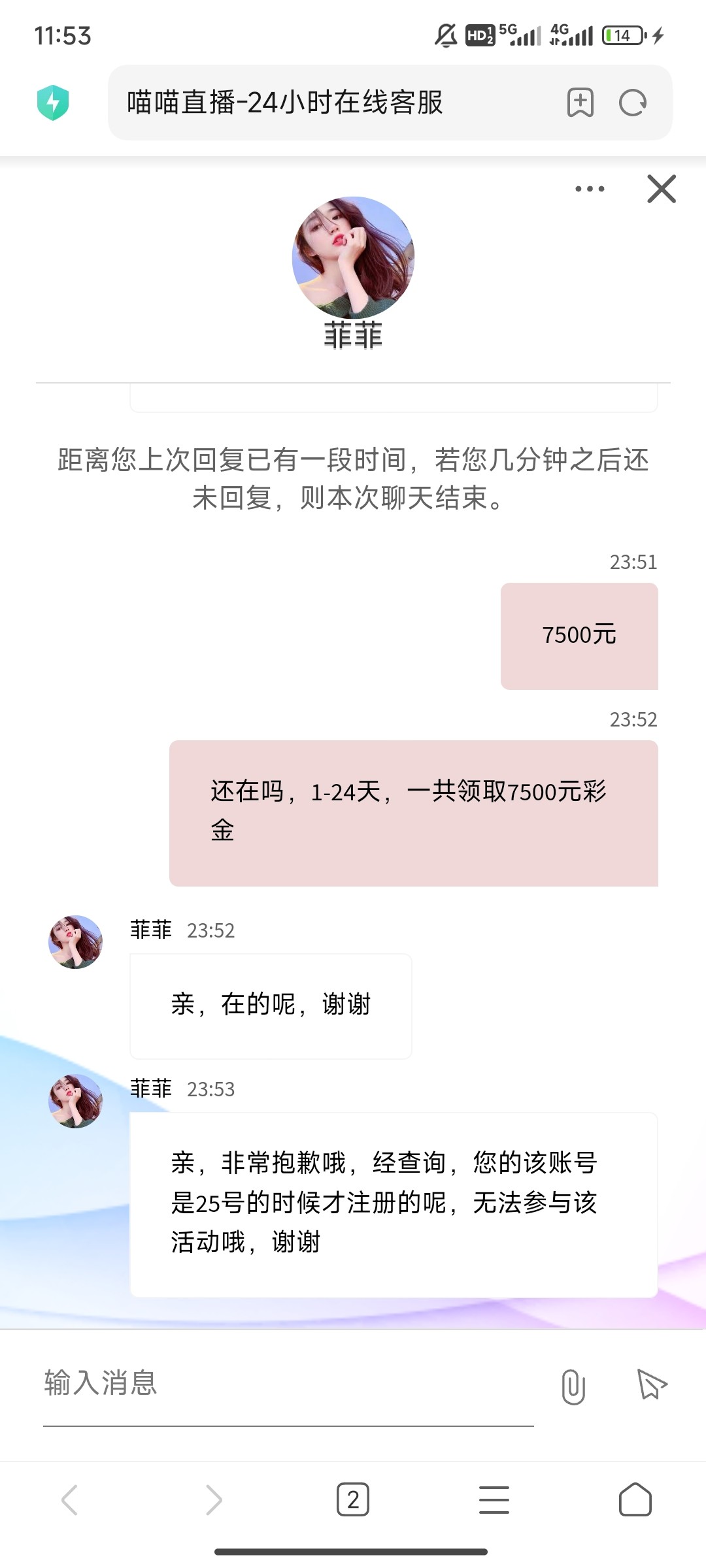 亲,您的该账号无法申请哦,您是25号注册的,该活动仅限制24号之前注册的客户申请,谢谢