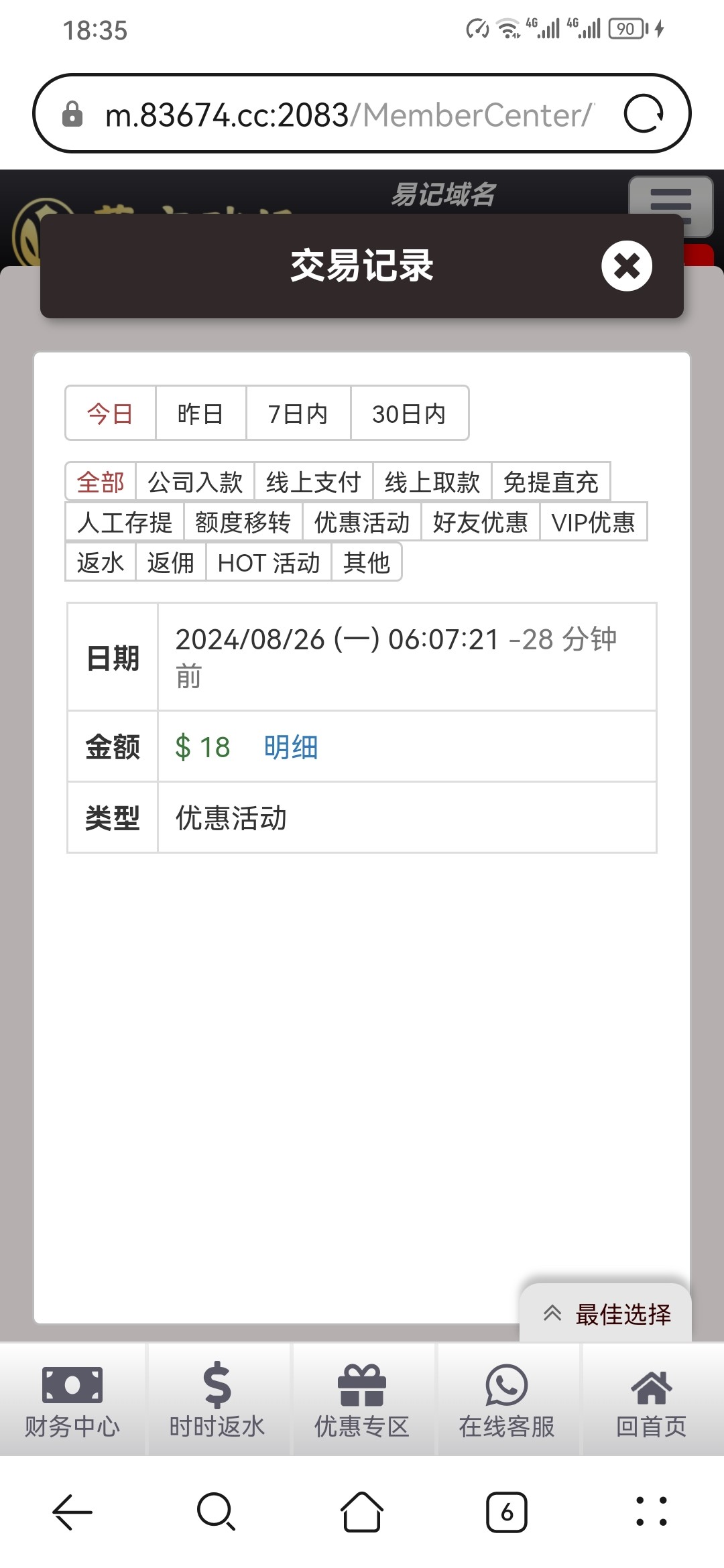 给了18,我印象当中是没充值过的