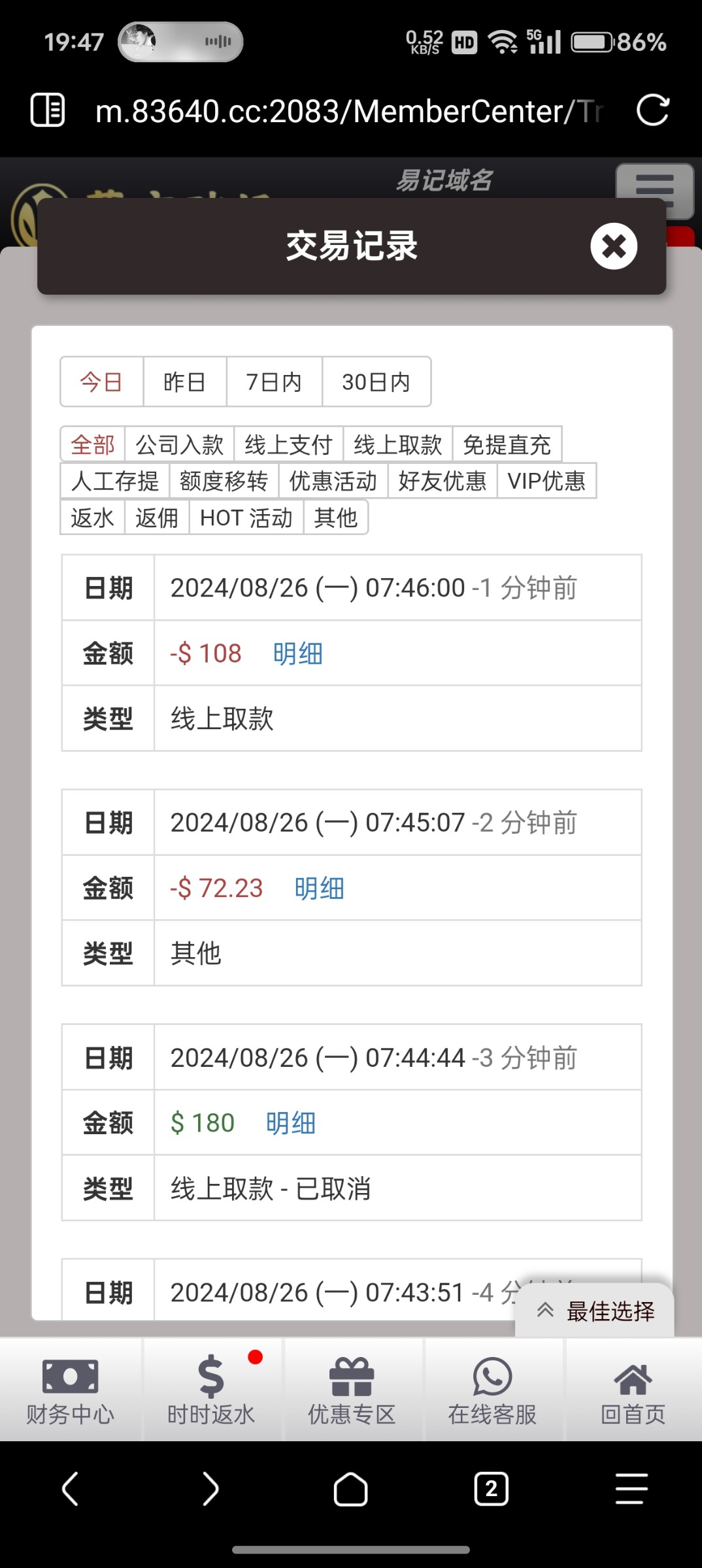 出款情况:自测(禁止充值)