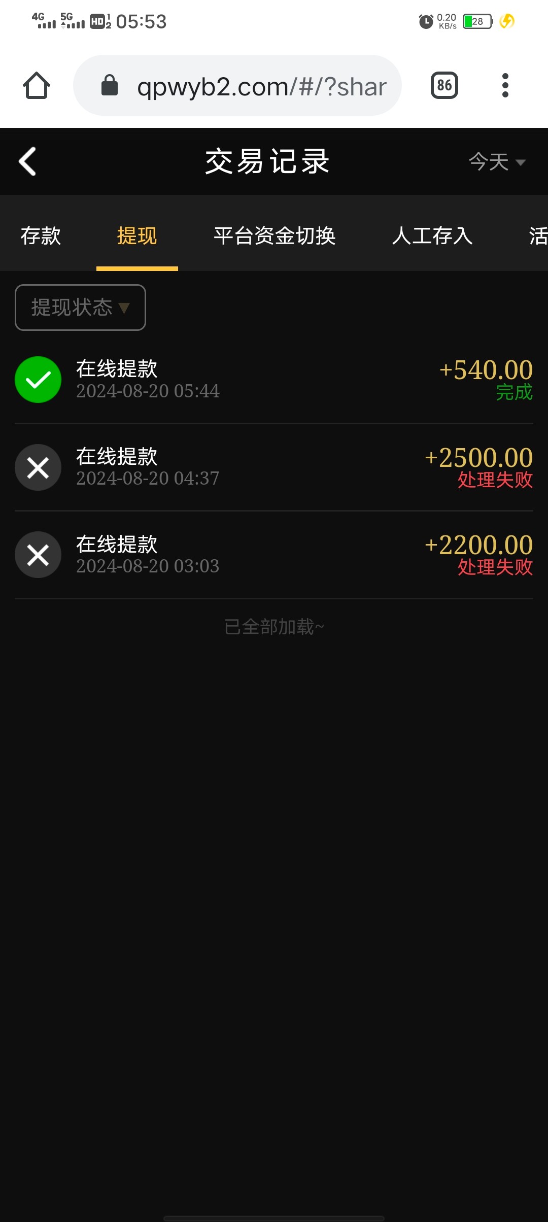 这傻鸟台 我一直玩的这个台 玩了三四年了 之前5000 6000的提都没事 然后最近几个月我发现他pg变成假的 后面cg9 捕鱼 棋牌全部变成假的 然后我还一直玩 假的也挺给我分 然后到了6月份 我充一百两百都能上差不多1000 但是就是不走 最后上头 到上个月都时候就直接开杀了 分都不给的那种一把不中杀了我6000 然后前几天我挂壁了我就充了几个50进去 1.2直接爆了2100 我就去提现 也没想那么多 因为玩了几年的台子了没黑过我而且上个月还输了6000 提现后他来个涉嫌开脚本 我直接懵逼 真的所有台我都想过会被黑 就是这个台子没想过 然后今天看到转移我就明白了 跑路了 去申请只给了188