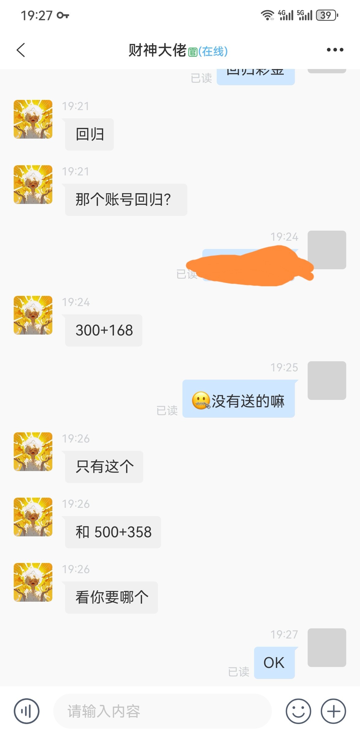 新号无视,有充值过的老账号直接登录去找客服说回归福利,报账号,他会让你下载飞鸽联系那个人了 461944.com