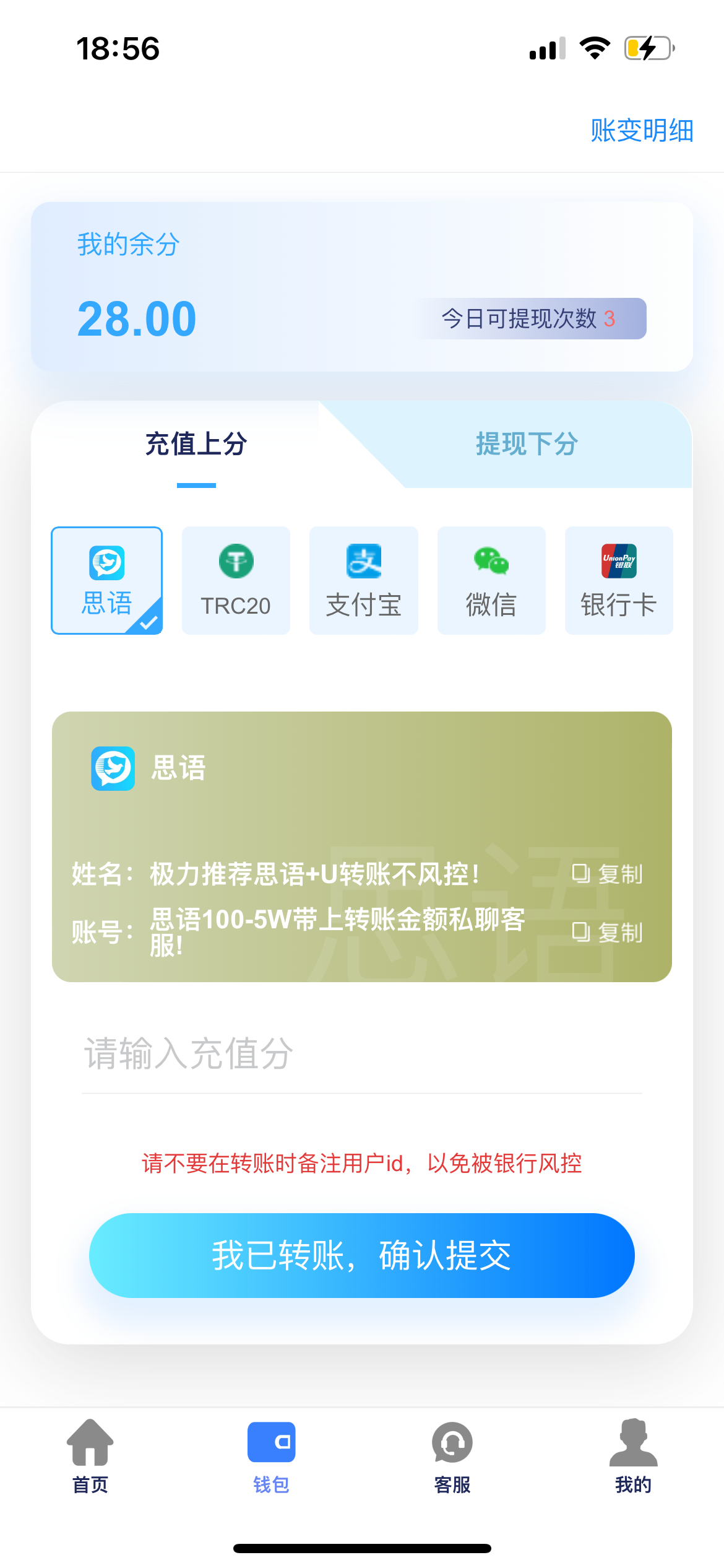 宋宋 ▶ 7788的我 可以下分 但是说要支付宝 我3个号都限制了收不了款真服了 2024-8-30