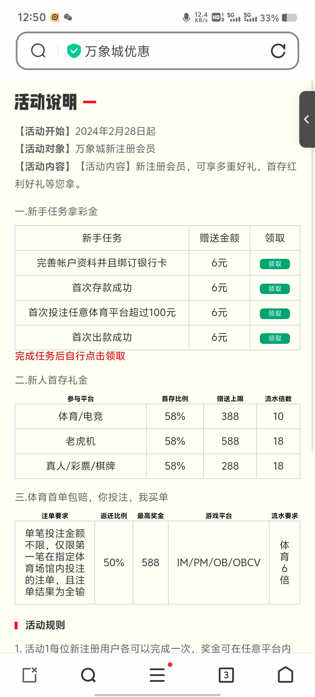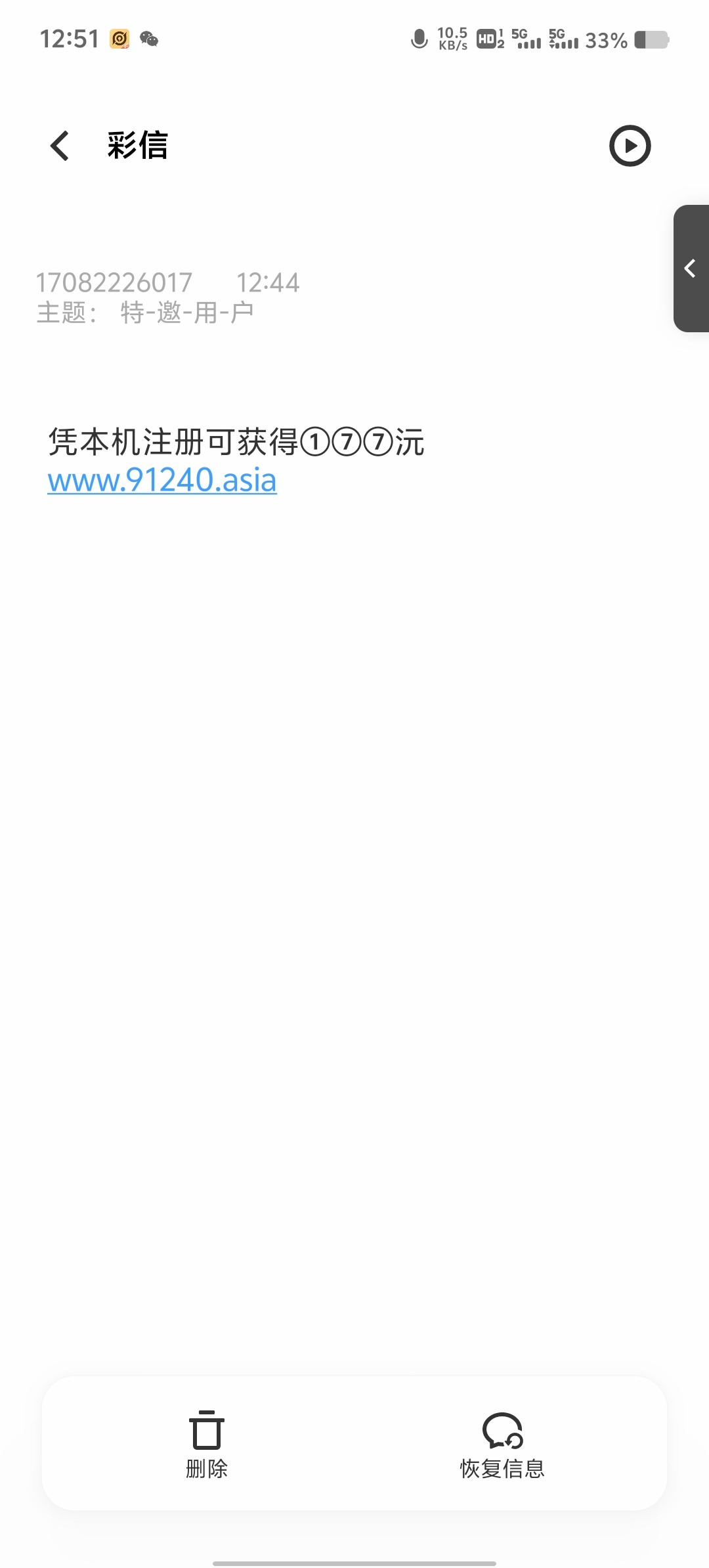接到短信,然后问客服说没有免费短信彩金,客服说活动里面有一个6块新人彩金,领到了还没打,你们试试,被黑了别骂我,我也不知道黑不黑