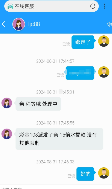 幸运 ▶ 阿日 领过了呀,我的邮箱,等一下他会查的 2024-9-3
