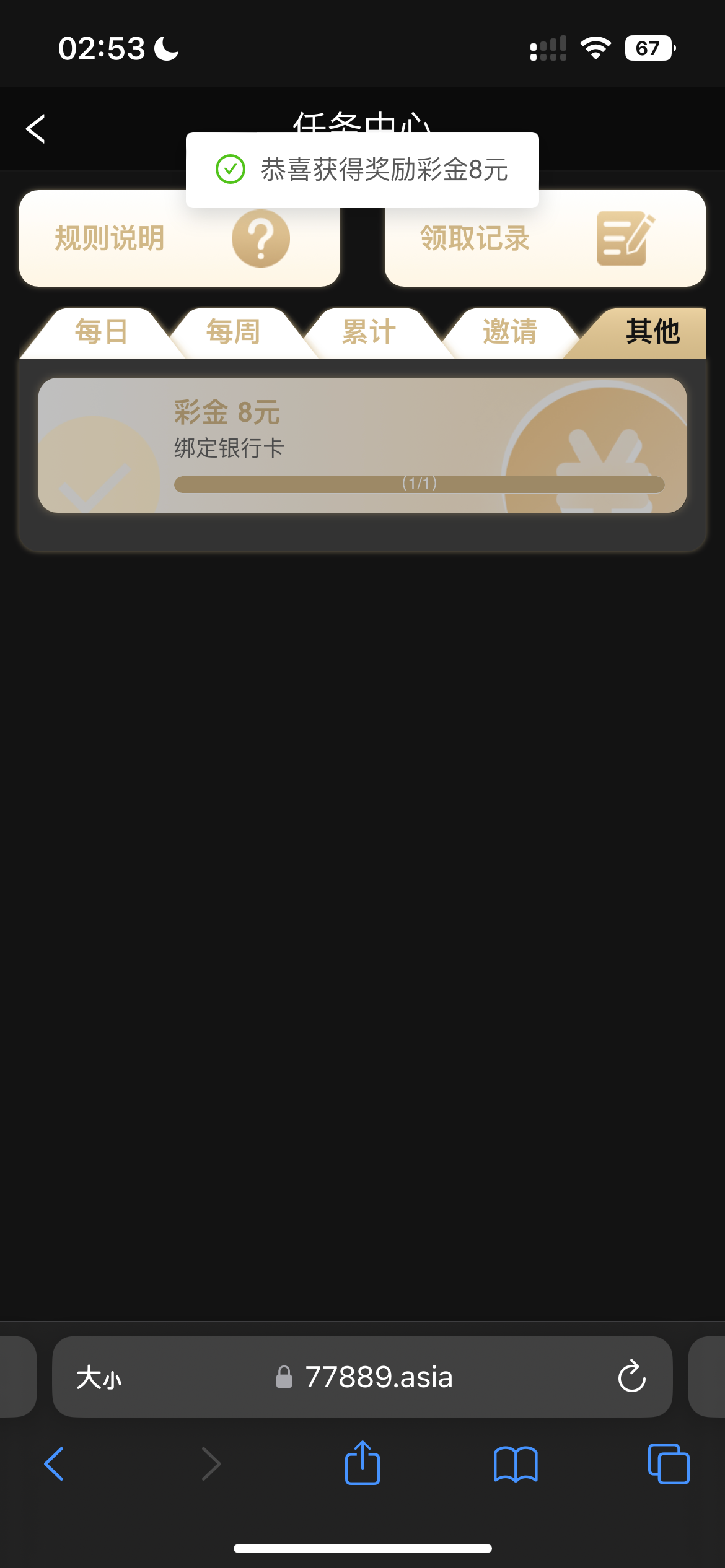 任务中心自助领取彩金
