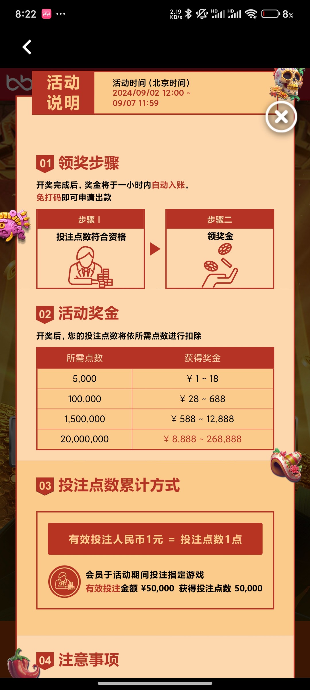 类似于争霸赛,给体验金打到多少给多少,写免费参与,有兴趣的可以先注册试试,9/2-9/7活动时间明天中午十二点开始,网址1966.com
