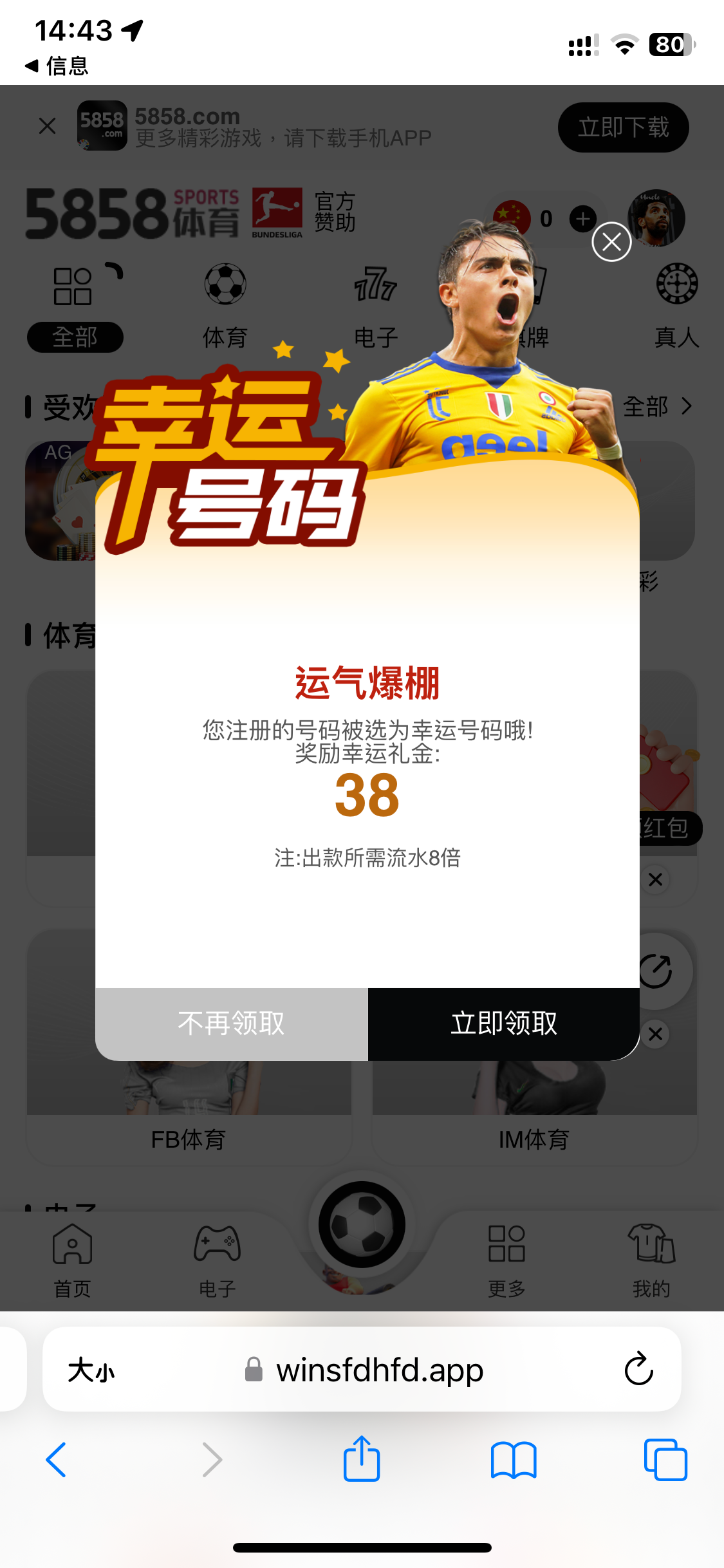 刚看见朋友注册秒58,我登录看下送了38,这台子无论新老用户是特邀登录就会送,以前注册了没送的,现在登录看看吧,网址5858.com