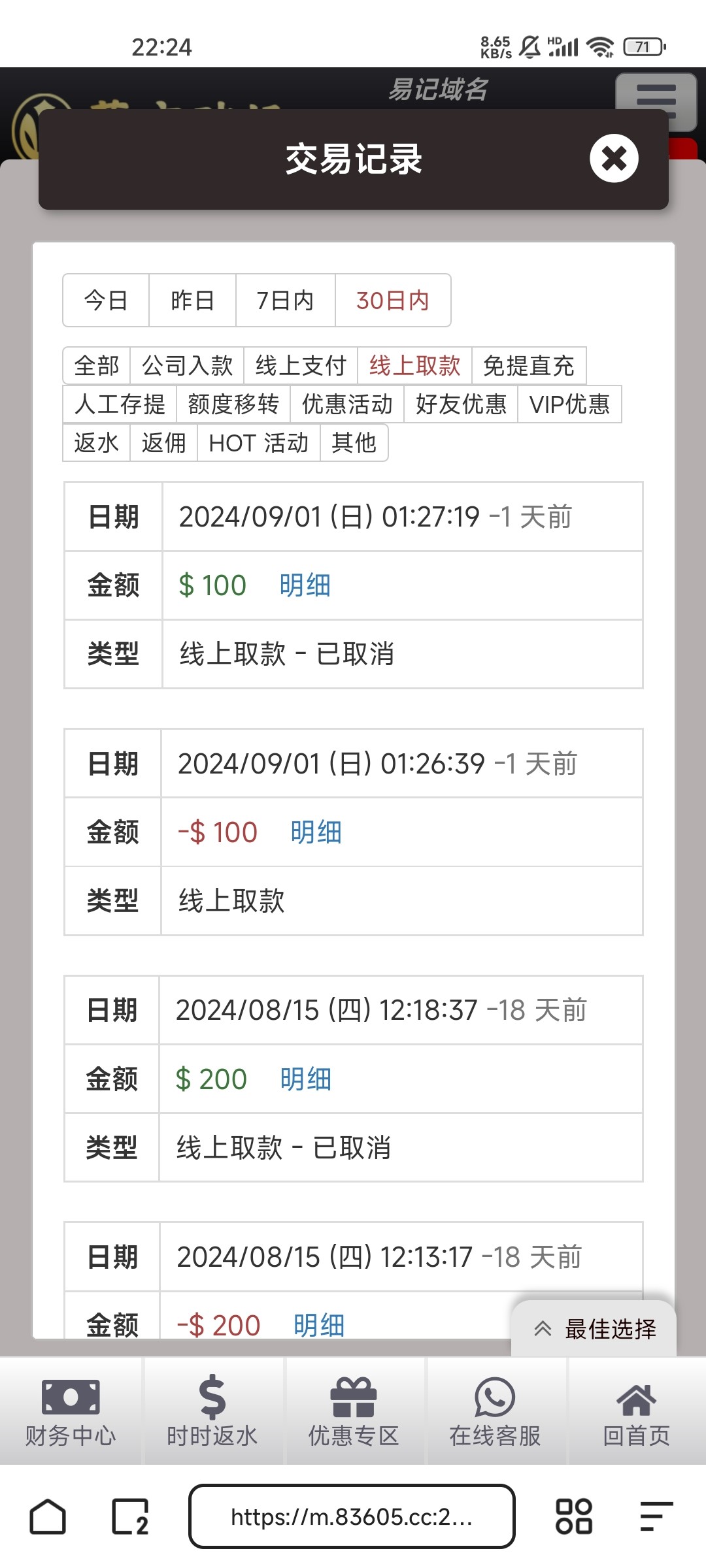 出款情况:自测(禁止充值)