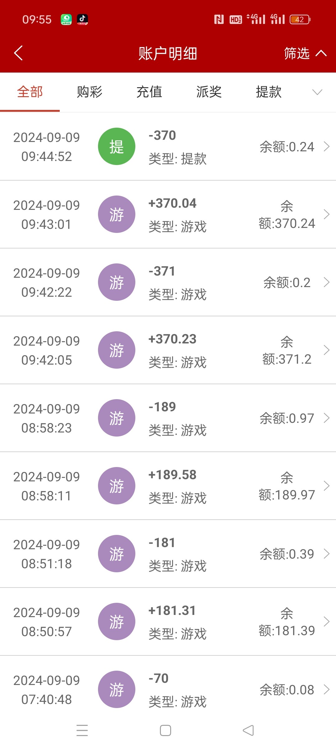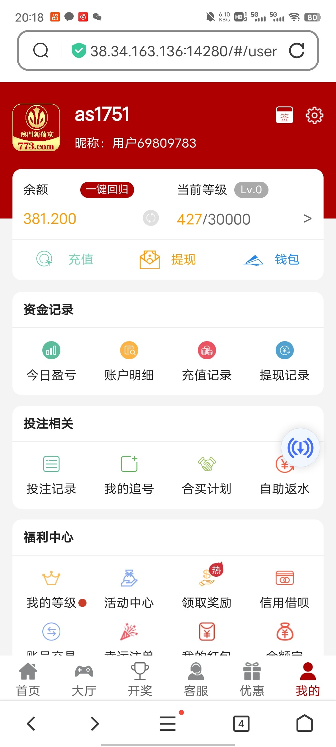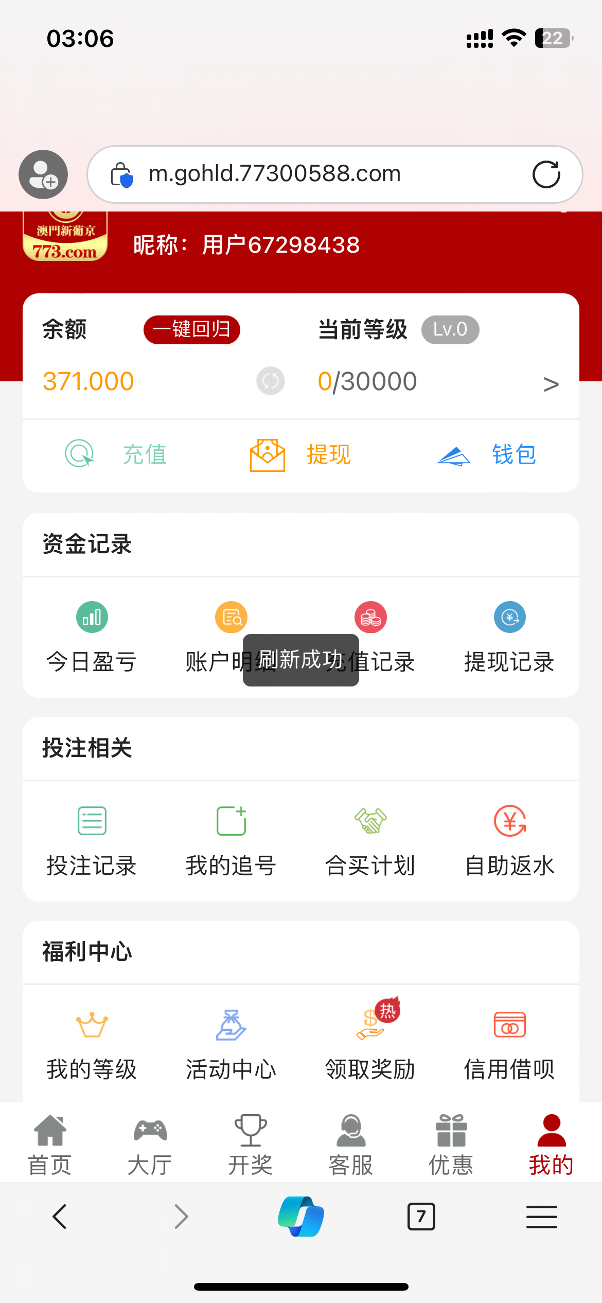 这台子从出来到现在彩金领了七八百,冲了三百多,一分钱没提过,你点水没有