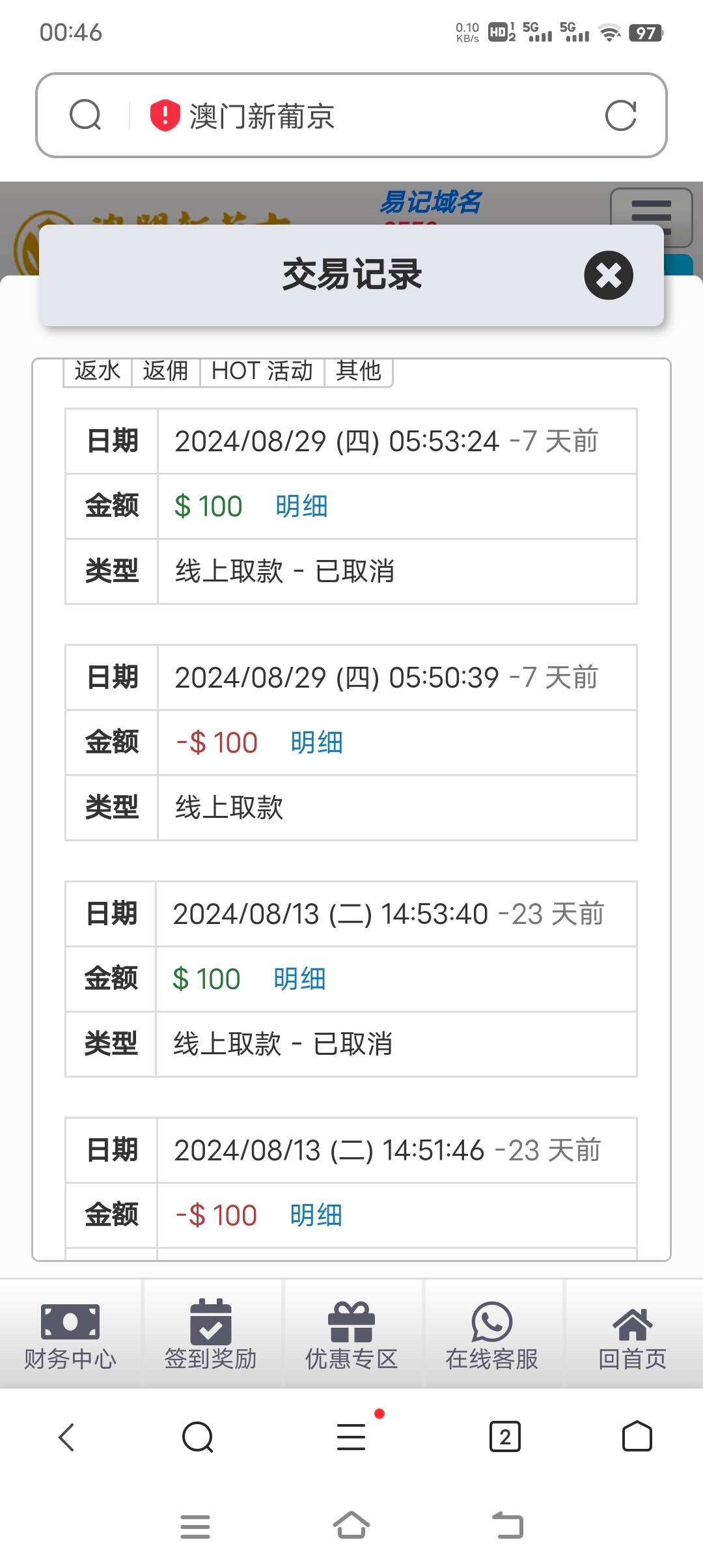 充值100打600流水 打完上900 扣了 只给我出288 后面活动领了2块 麻将一拉直接进胡炸168后面提现还让我充值 我就没充 直接上1w3 提现就余额清零 服了 垃圾台