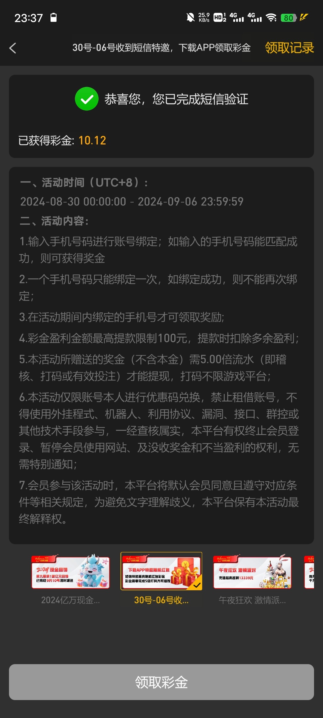 彩金时间又延期了,又上了两个号但是都没打出来